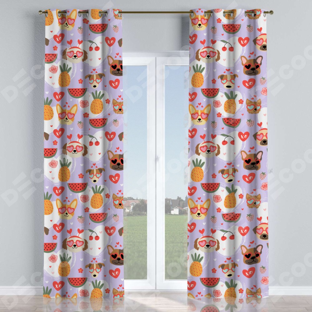 Комплект прямых штор, от производителя «Cortin», пошиты из ткани блэкаут с нанесением сублимационной печати «Забавные собачки». Данная модель пошита на люверсах, комплектуется на выбор круглым карнизом и подходит для монтажа на стену или потолок. Прямые шторы на люверсах шьются по стандарту с коэффициентом 1/2 (на 100 см. ширины проёма 200 см. ширины ткани), отличительным преимуществом данной модели является простой способ монтажа. Достаточно повесить ее на трубу и штора готова!