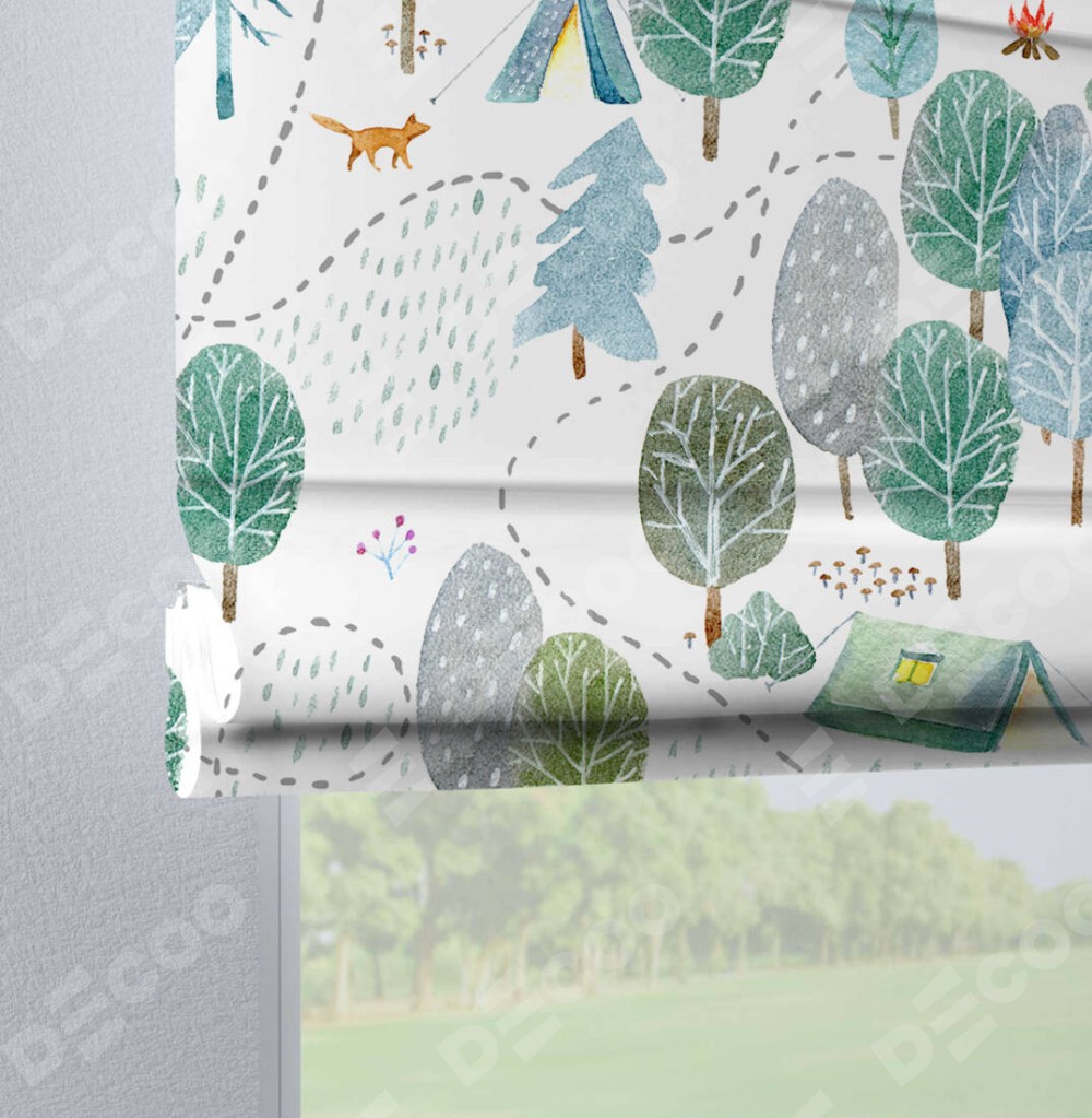 Римская штора «Кортин» на петлях «Лесистая местность» отлично подойдёт для интерьера: на балкон, в кухню и в детскую.