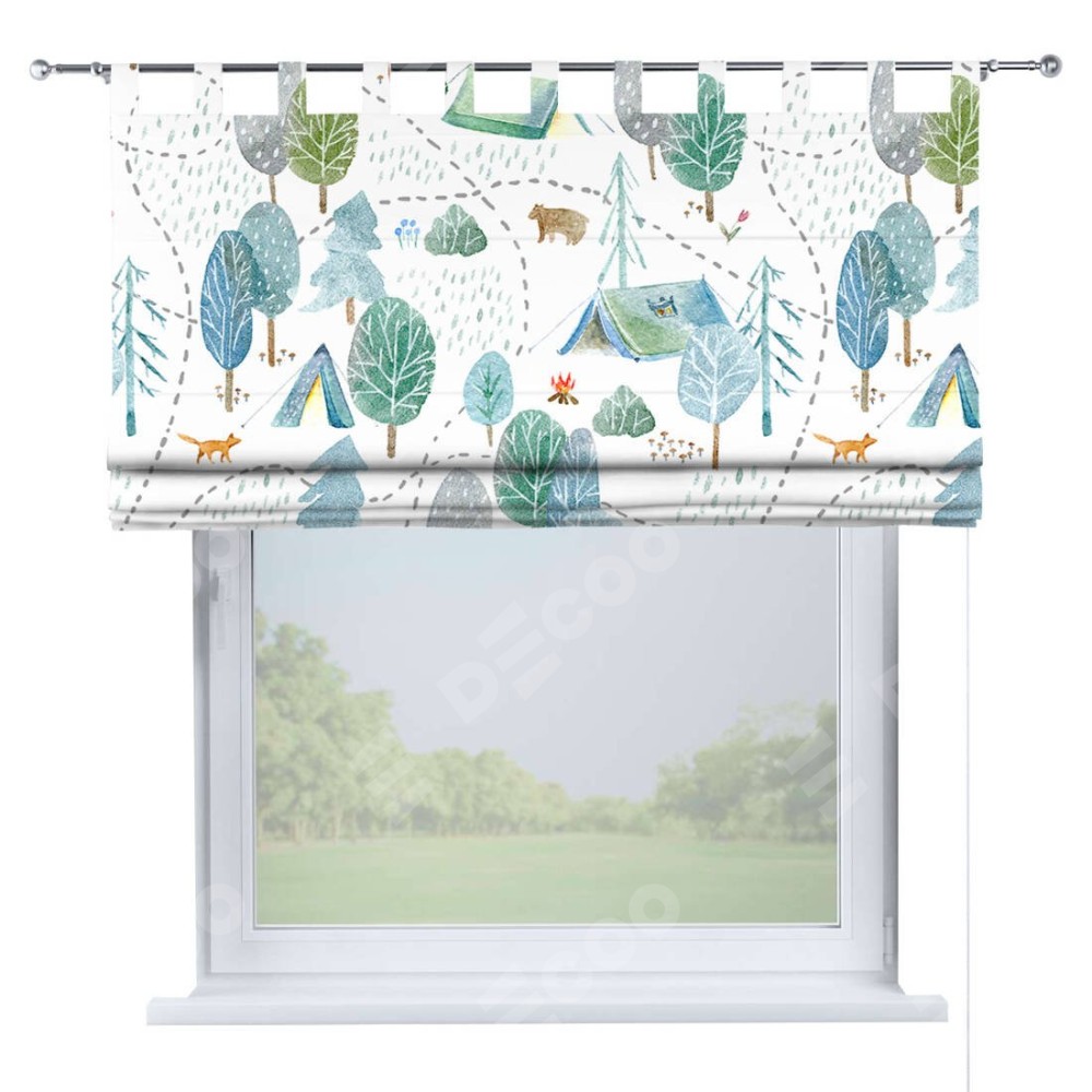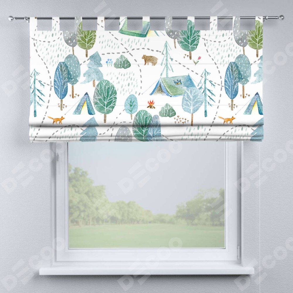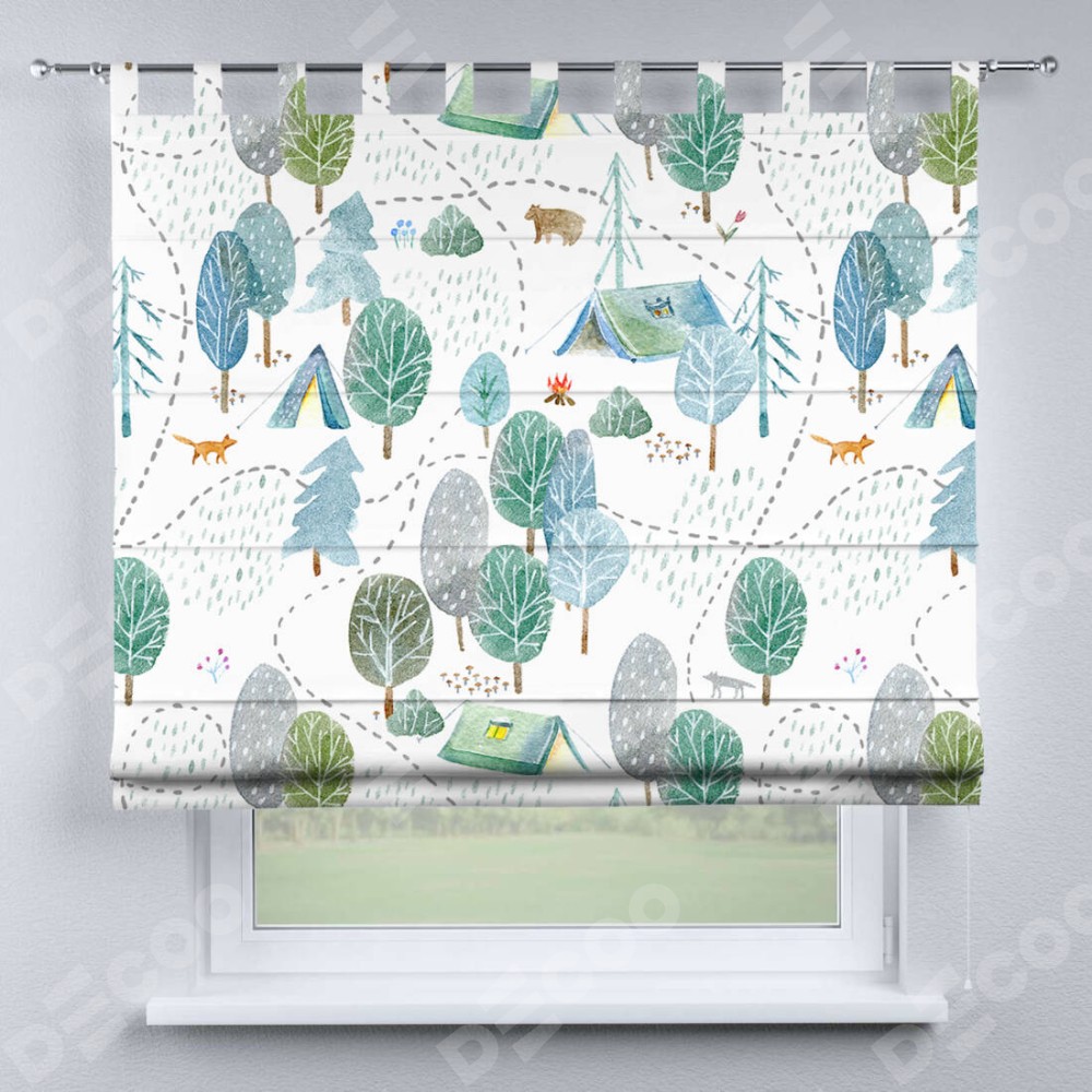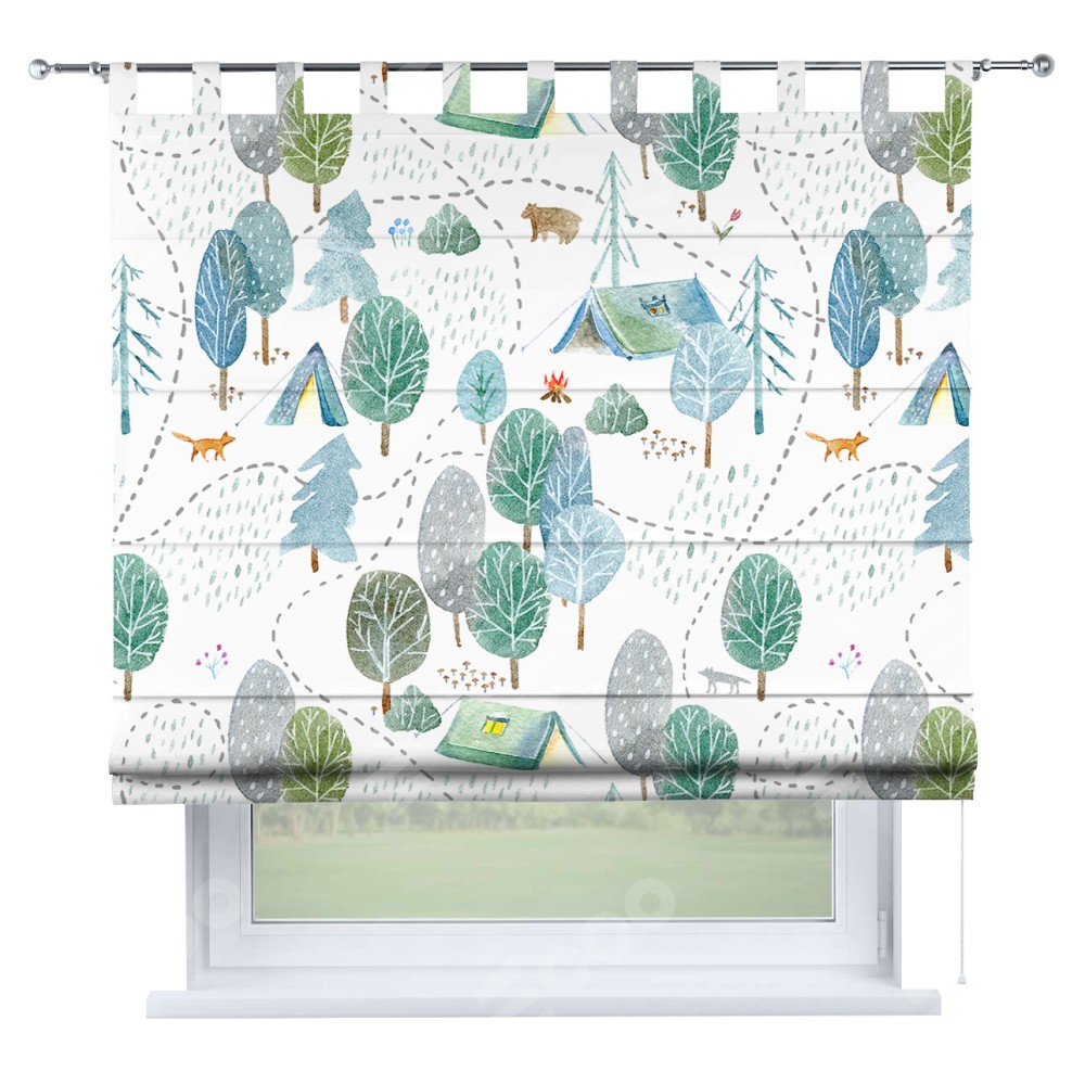Римская штора производителя «Cortin», используется для проёма, пошита из ткани блэкаут с нанесением сублимационной печати «Лесистая местность». Данная модель пошита на петлях, комплектуется на выбор круглым карнизом и подходит для монтажа на стену. Римская штора на петлях имеет простую систему регулировки высоты, отличительным преимуществом данной модели является простой способ монтажа. Достаточно повесить ее на трубу и штора готова!