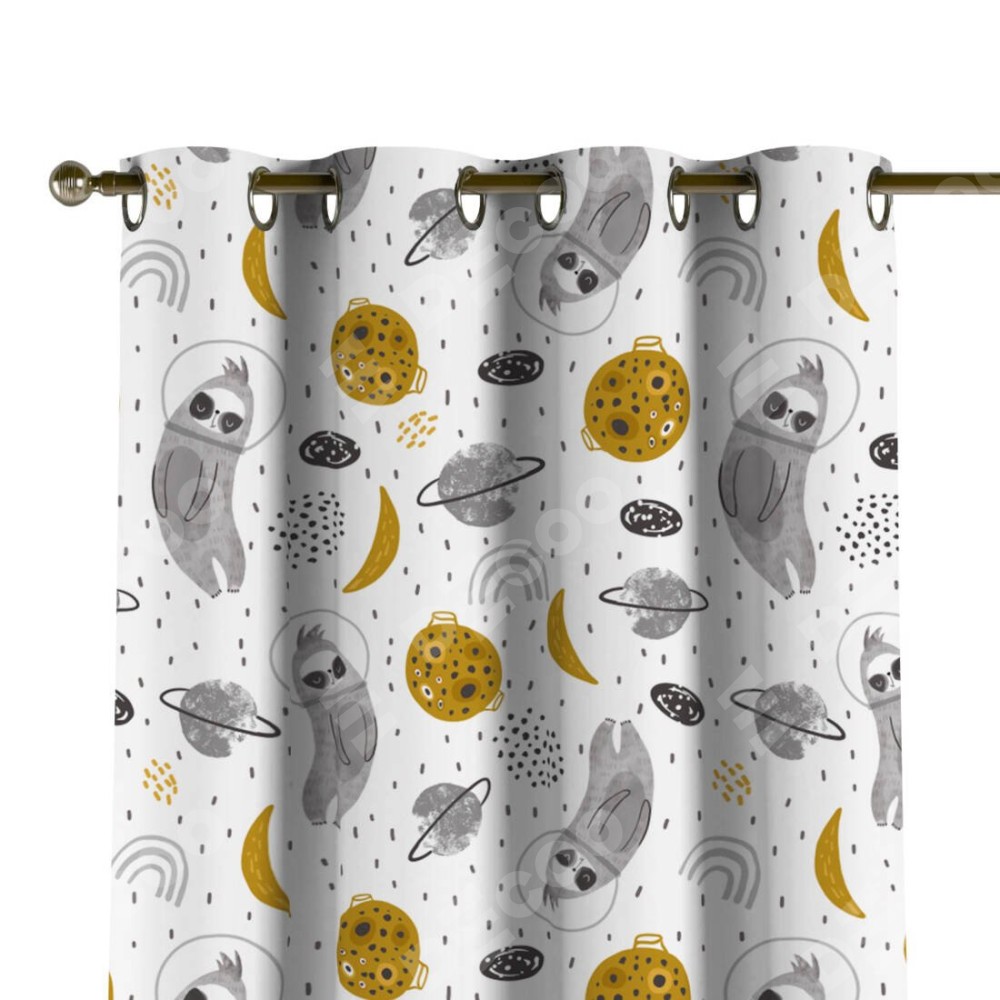 Комплект прямых штор, от производителя «Cortin», пошиты из ткани блэкаут с нанесением сублимационной печати «Ленивец в шлеме». Данная модель пошита на люверсах, комплектуется на выбор круглым карнизом и подходит для монтажа на стену или потолок. Прямые шторы на люверсах шьются по стандарту с коэффициентом 1/2 (на 100 см. ширины проёма 200 см. ширины ткани), отличительным преимуществом данной модели является простой способ монтажа. Достаточно повесить ее на трубу и штора готова!