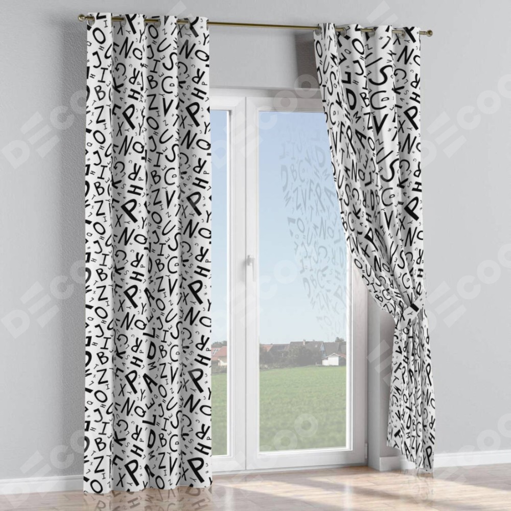 Комплект штор на люверсах «Литеры на белом» отлично подойдёт для интерьера спальня, детская и холл.
