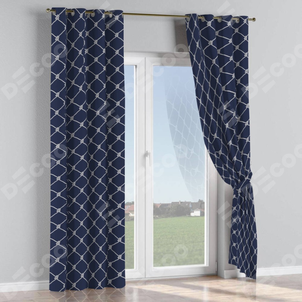Комплект прямых штор, от производителя «Cortin», пошиты из ткани блэкаут с нанесением сублимационной печати «Морские веревки». Данная модель пошита на люверсах, комплектуется на выбор круглым карнизом и подходит для монтажа на стену или потолок. Прямые шторы на люверсах шьются по стандарту с коэффициентом 1/2 (на 100 см. ширины проёма 200 см. ширины ткани), отличительным преимуществом данной модели является простой способ монтажа. Достаточно повесить ее на трубу и штора готова!