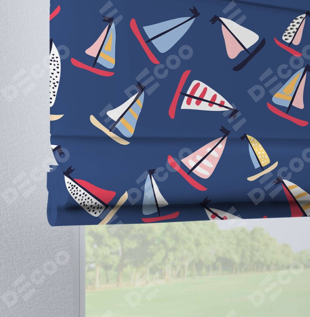 Римская штора «Кортин» на петлях «Морское приключение» предоставлена в следующих характеристиках: