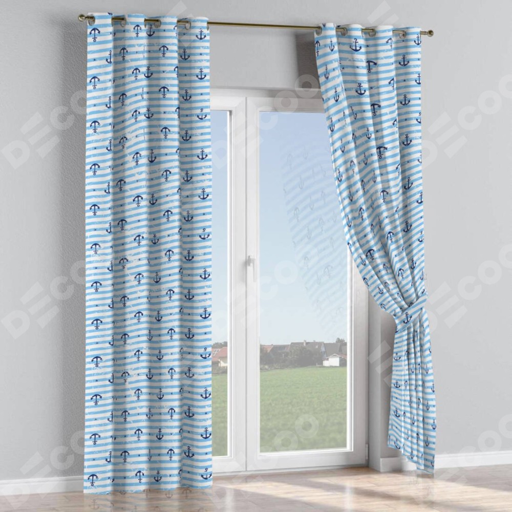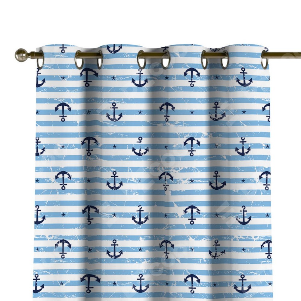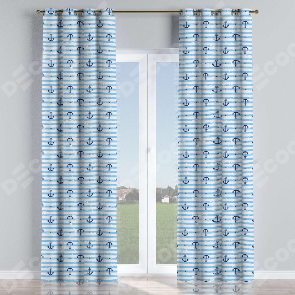 Комплект штор на люверсах «Полоски и якори» отлично подойдёт для интерьера холл, гостиная и комнату.