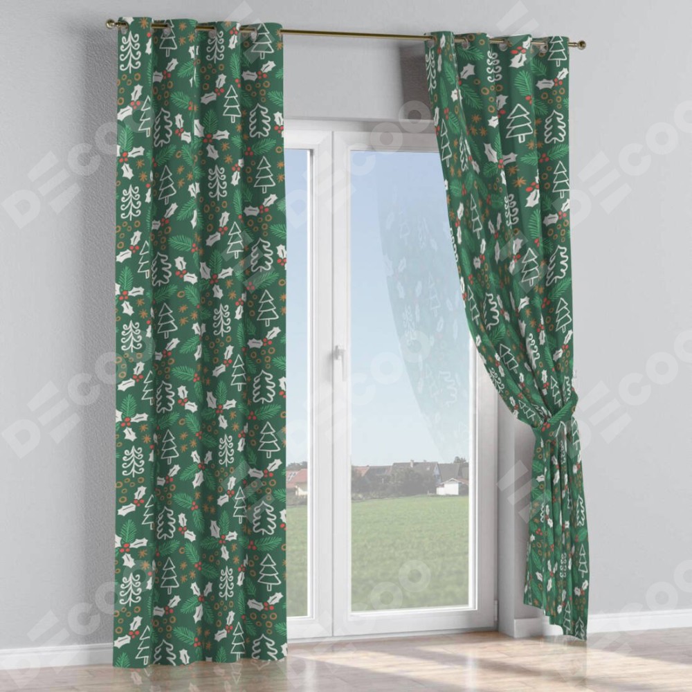 Комплект прямых штор, от производителя «Cortin», пошиты из ткани блэкаут с нанесением сублимационной печати «Рождественский узор». Данная модель пошита на люверсах, комплектуется на выбор круглым карнизом и подходит для монтажа на стену или потолок. Прямые шторы на люверсах шьются по стандарту с коэффициентом 1/2 (на 100 см. ширины проёма 200 см. ширины ткани), отличительным преимуществом данной модели является простой способ монтажа. Достаточно повесить ее на трубу и штора готова!