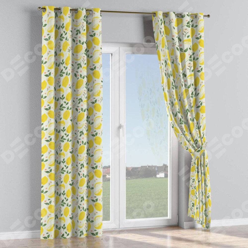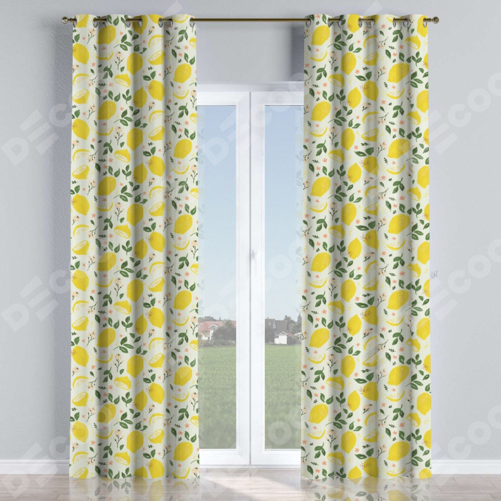 Комплект прямых штор, от производителя «Cortin», пошиты из ткани блэкаут с нанесением сублимационной печати «Сочные лимоны». Данная модель пошита на люверсах, комплектуется на выбор круглым карнизом и подходит для монтажа на стену или потолок. Прямые шторы на люверсах шьются по стандарту с коэффициентом 1/2 (на 100 см. ширины проёма 200 см. ширины ткани), отличительным преимуществом данной модели является простой способ монтажа. Достаточно повесить ее на трубу и штора готова!