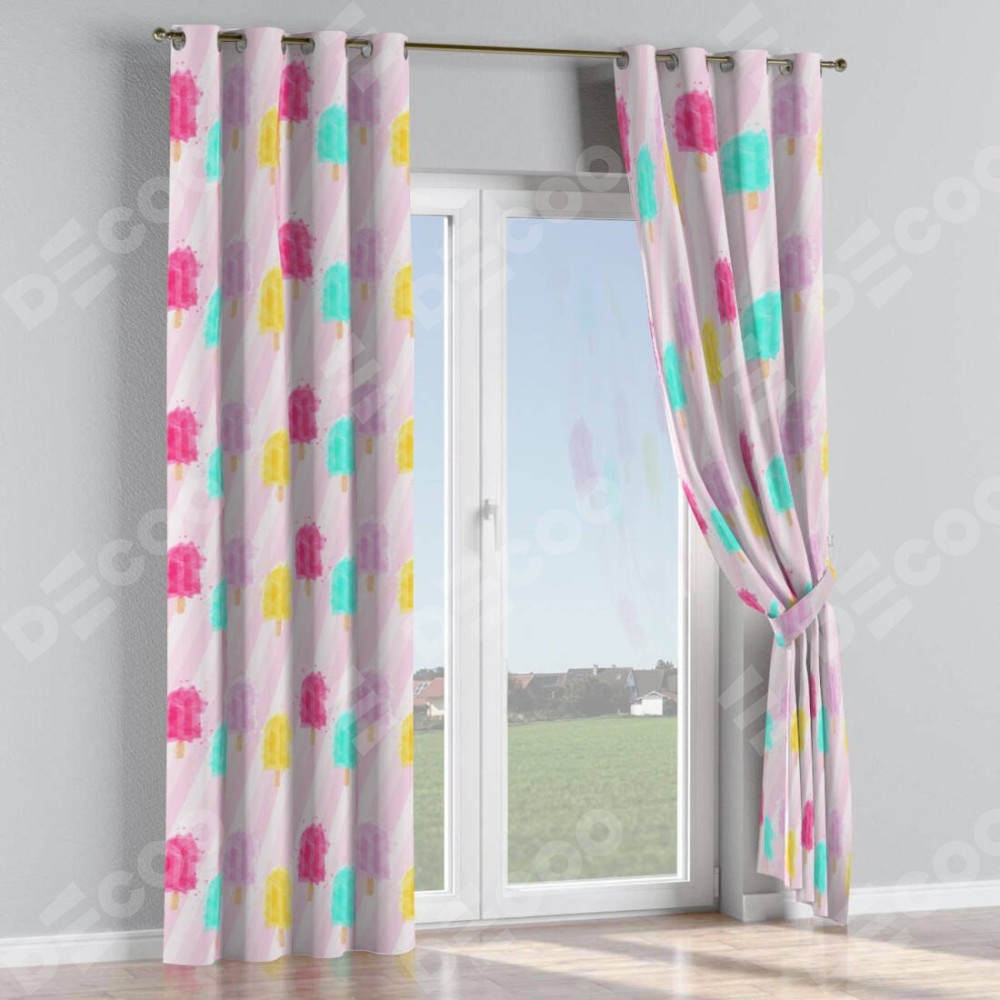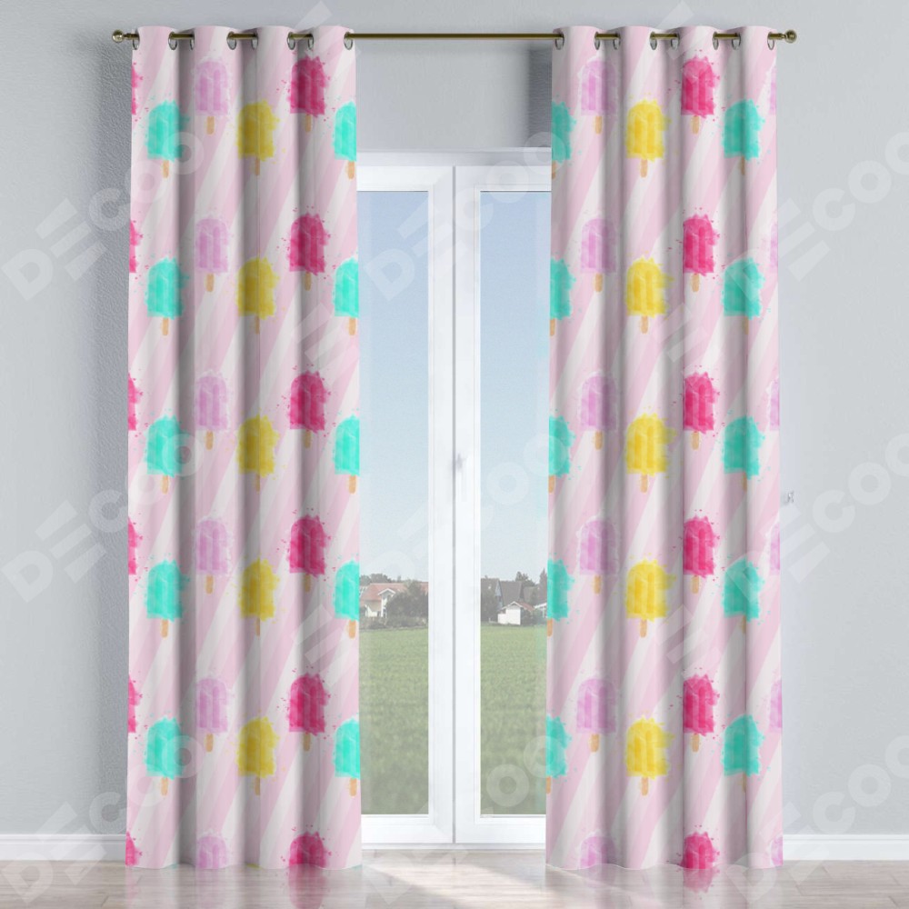 Комплект штор на люверсах «Фруктовое мороженое» отлично подойдёт для интерьера комнату, для квартиры и для комнаты.