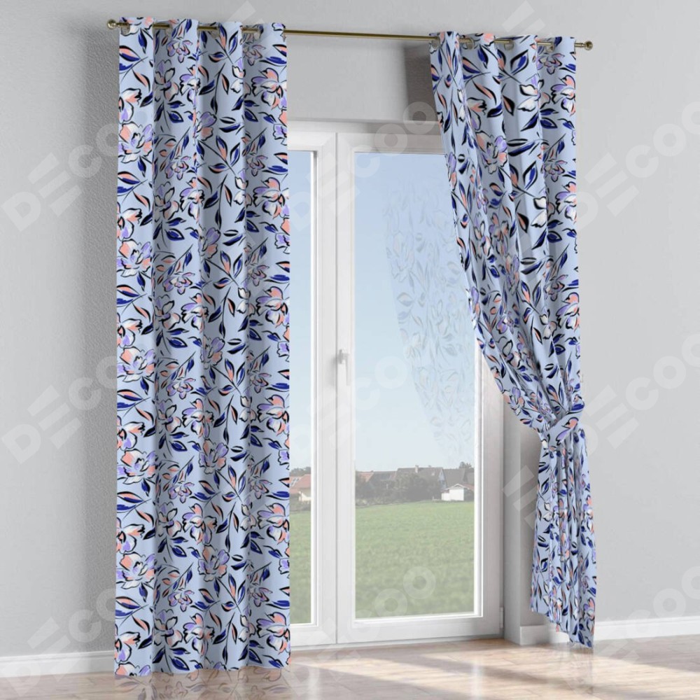 Комплект прямых штор, от производителя «Cortin», пошиты из ткани блэкаут с нанесением сублимационной печати «Цветочки и листочки». Данная модель пошита на люверсах, комплектуется на выбор круглым карнизом и подходит для монтажа на стену или потолок. Прямые шторы на люверсах шьются по стандарту с коэффициентом 1/2 (на 100 см. ширины проёма 200 см. ширины ткани), отличительным преимуществом данной модели является простой способ монтажа. Достаточно повесить ее на трубу и штора готова!