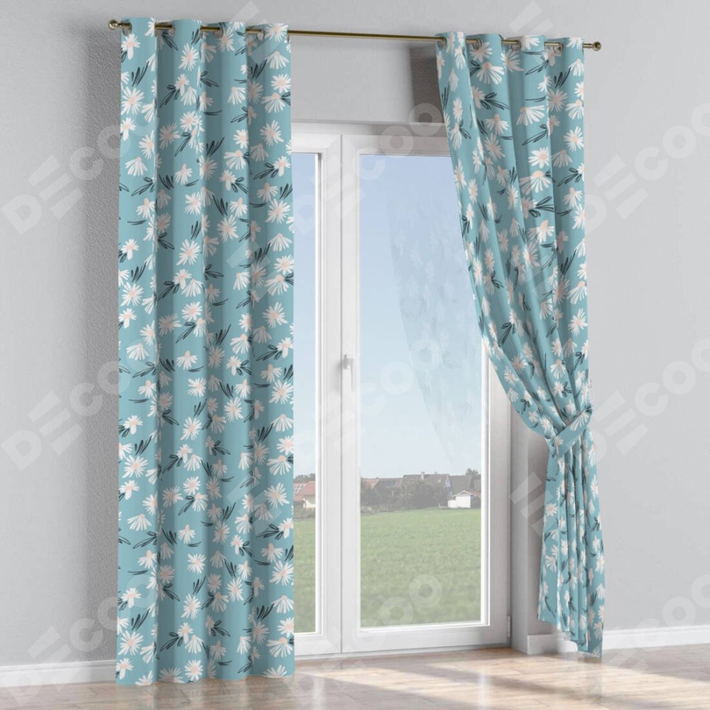 Комплект прямых штор, от производителя «Cortin», пошиты из ткани блэкаут с нанесением сублимационной печати «Чудесные ромашки». Данная модель пошита на люверсах, комплектуется на выбор круглым карнизом и подходит для монтажа на стену или потолок. Прямые шторы на люверсах шьются по стандарту с коэффициентом 1/2 (на 100 см. ширины проёма 200 см. ширины ткани), отличительным преимуществом данной модели является простой способ монтажа. Достаточно повесить ее на трубу и штора готова!