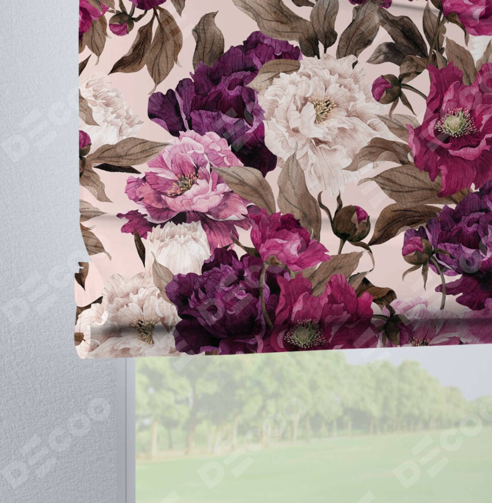 Римская штора на петлях «Великолепные пионы» отлично подойдёт для интерьера:.