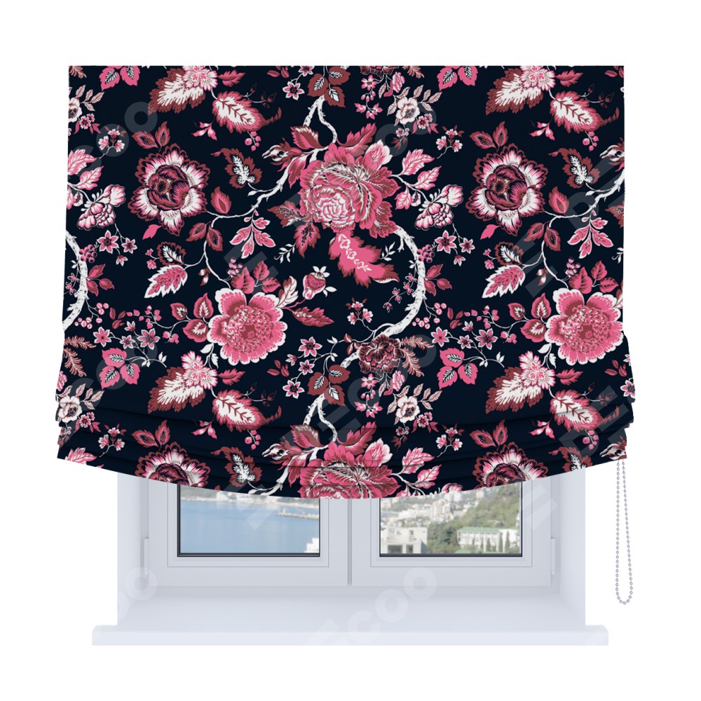 Римская штора Soft производителя «Cortin», используется для проёма, пошита из ткани блэкаут с нанесением сублимационной печати «Бал цветов». Имеет универсальный механизм и подходит для монтажа: на потолок, на стену и в нишу. В отличие от стандартных римских штор, римская штора Soft не имеет горизонтальных вставок и нижнего отвеса. Это позволяет ткани произвольно драпироваться в свободные мягкие складки.