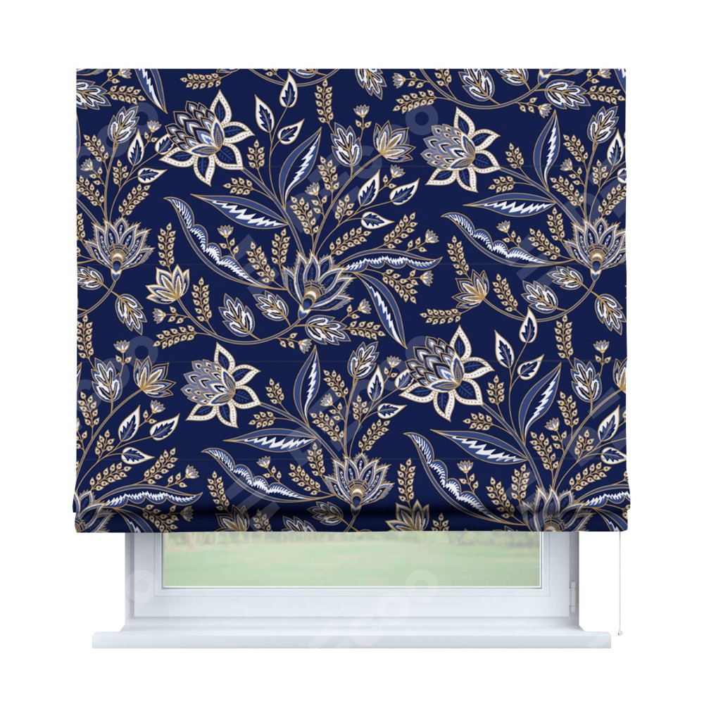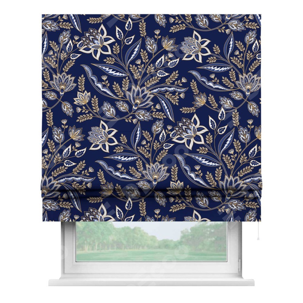 Римская штора «Кортин» для проема «Индиго батик» предоставлена в следующих характеристиках: