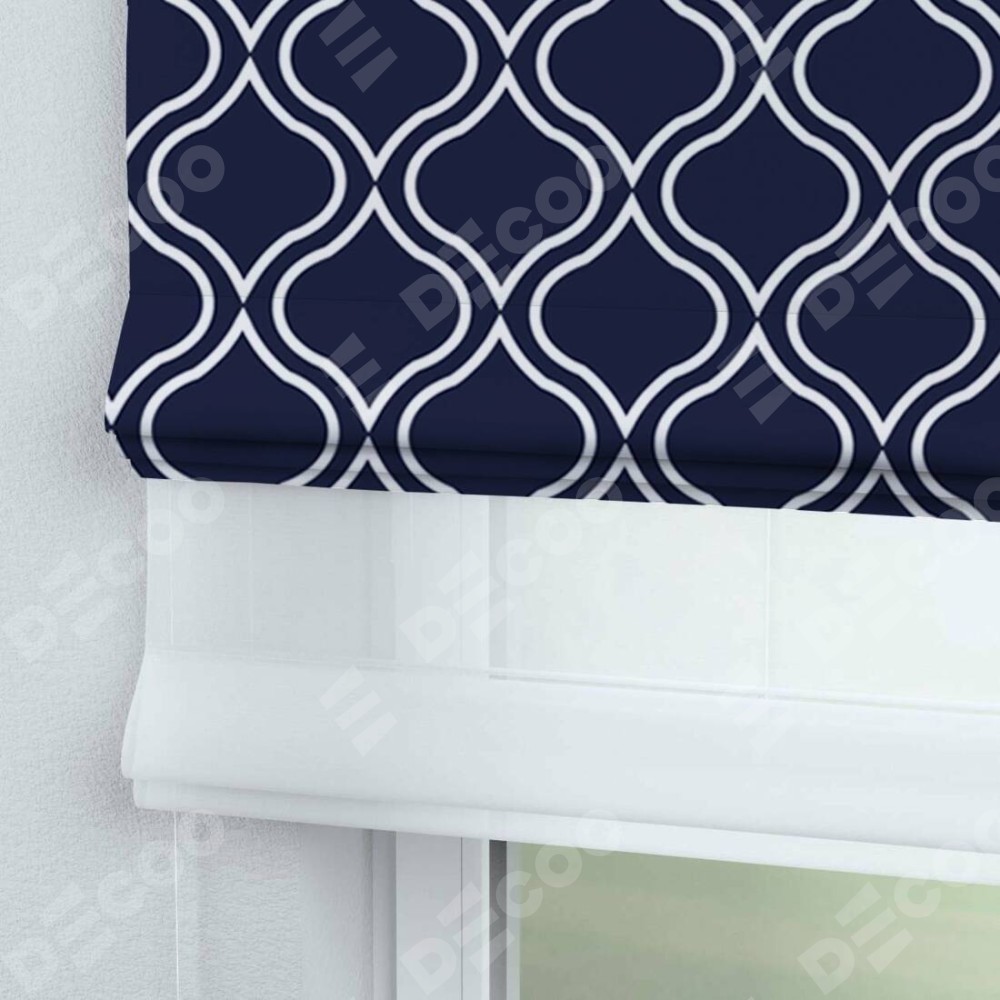 Римская штора «Кортин» день-ночь «Тайны востока синий» доступна к заказу по по вашим размерам. Её артикул: 22623. Стоимость заказа будет зависеть от размеров и будет начинаться от 5 300 руб. В интернет-магазине Decoo есть возможность выбрать товар в любых размерных вариациях.