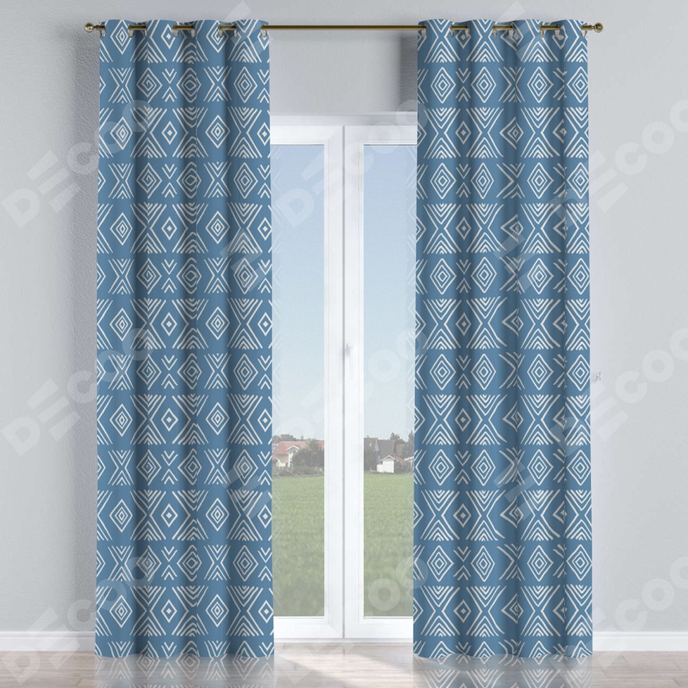 Комплект прямых штор, от производителя «Cortin», пошиты из ткани блэкаут с нанесением сублимационной печати «Графический орнамент». Данная модель пошита на люверсах, комплектуется на выбор круглым карнизом и подходит для монтажа на стену или потолок. Прямые шторы на люверсах шьются по стандарту с коэффициентом 1/2 (на 100 см. ширины проёма 200 см. ширины ткани), отличительным преимуществом данной модели является простой способ монтажа. Достаточно повесить ее на трубу и штора готова!