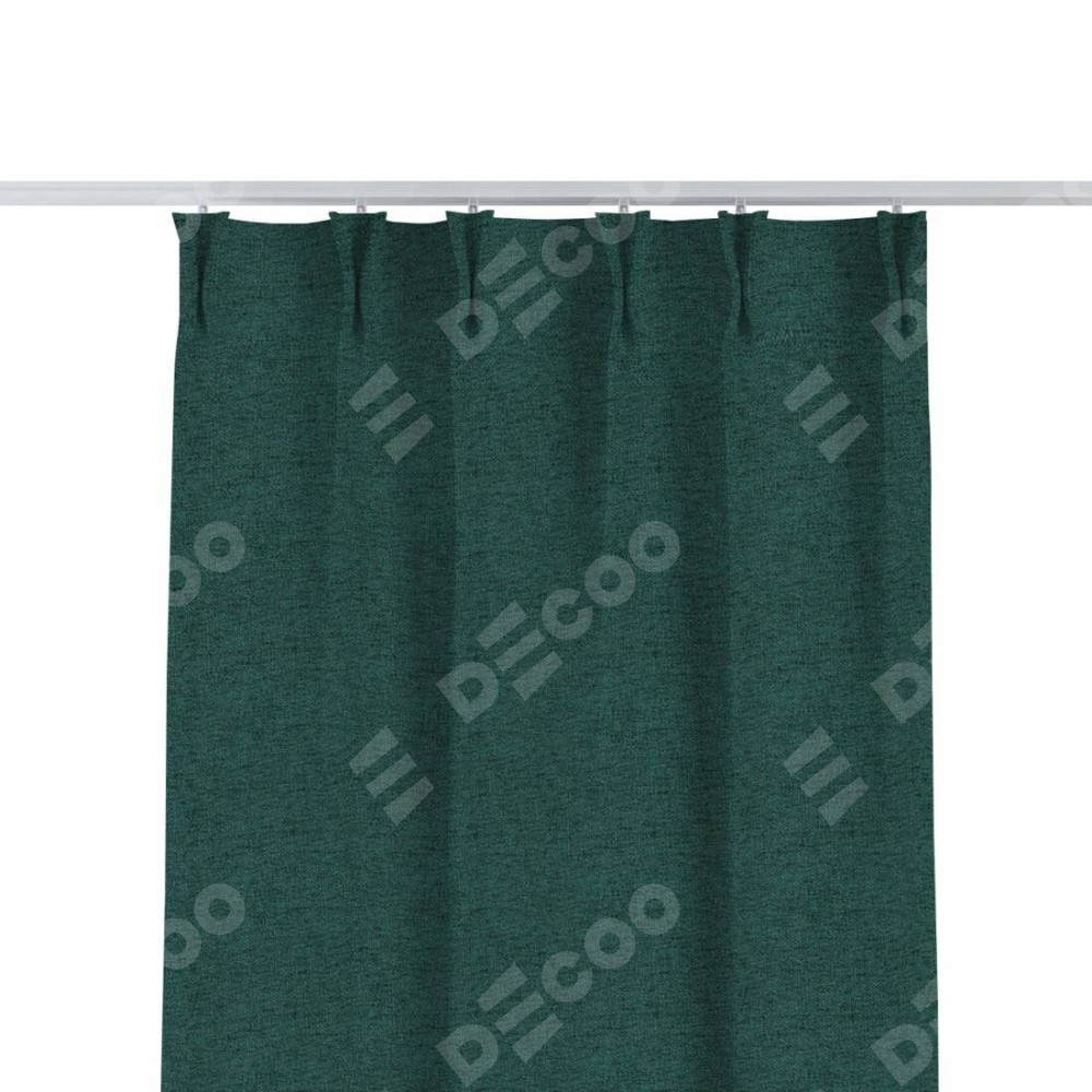 Комплект прямых штор, от производителя «Cortin», пошиты из ткани стиф димаут сине-зелёный, артикул ткани 18194. С изнаночной стороны в верхней части штор пристрачивается шторная лента с декоративными складками «Кустик». Для создания элегантных складок прямые шторы шьются по стандарту с коэффициентом 1:2 (на 100 см. ширины проёма 200 см. ширины ткани).