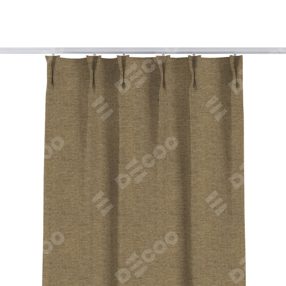 Комплект прямых штор, от производителя «Cortin», пошиты из ткани стиф димаут тёмно-бежевый, артикул ткани 18085. С изнаночной стороны в верхней части штор пристрачивается шторная лента с декоративными складками «Кустик». Для создания элегантных складок прямые шторы шьются по стандарту с коэффициентом 1:2 (на 100 см. ширины проёма 200 см. ширины ткани).
