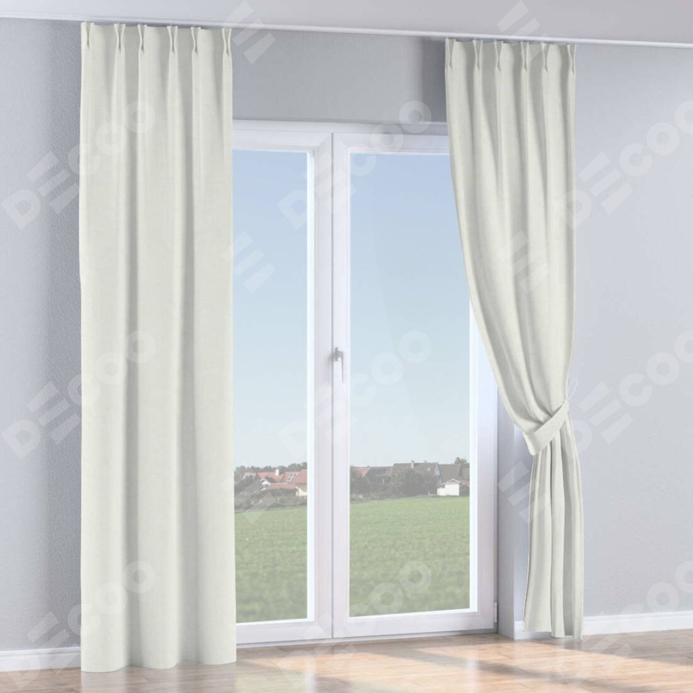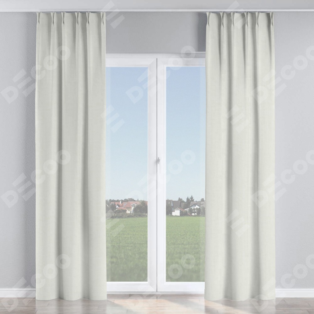 Комплект прямых штор, от производителя «Cortin», пошиты из ткани лён молочный, артикул ткани 23568. С изнаночной стороны в верхней части штор пристрачивается шторная лента с декоративными складками «Кустик». Для создания элегантных складок прямые шторы шьются по стандарту с коэффициентом 1:2 (на 100 см. ширины проёма 200 см. ширины ткани).