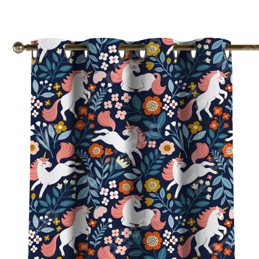 Комплект штор на люверсах «Цветы и единороги» отлично подойдёт для интерьера комнату, для девочки и детская.