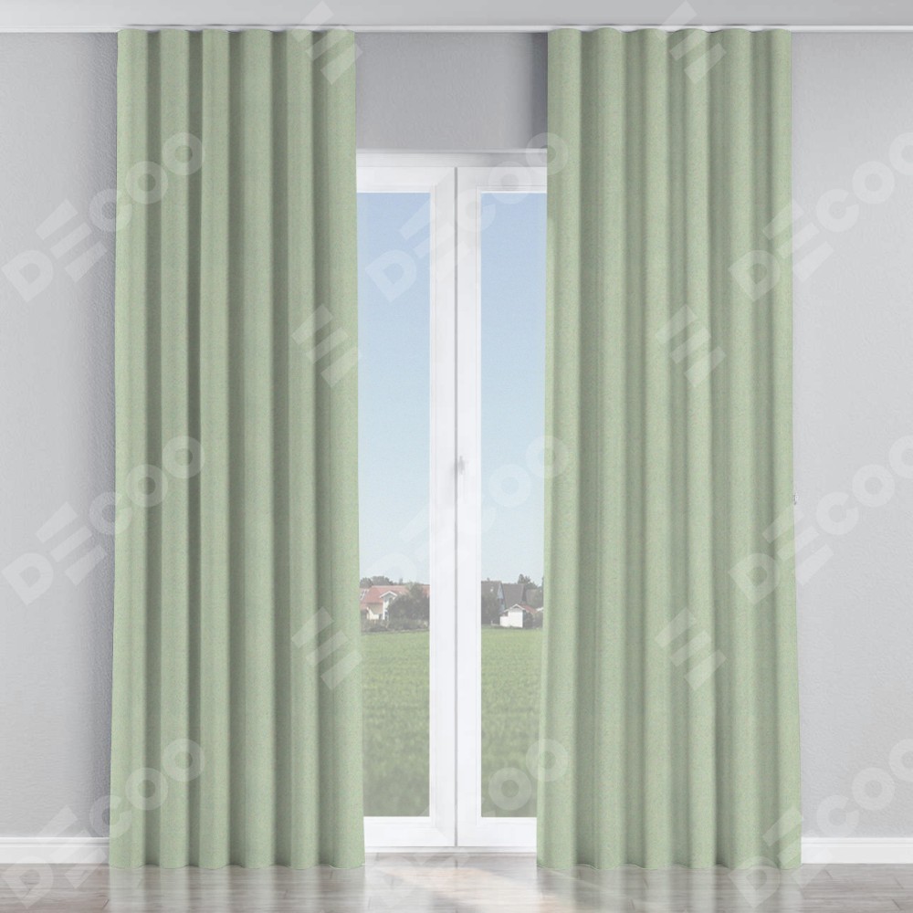 Комплект прямых штор, от производителя «Cortin», пошиты из ткани блэкаут однотонный светло-серый, артикул ткани 29332−2. С изнаночной стороны в верхней части штор пристрачивается шторная лента с декоративными складками «Волна». Для создания элегантных складок прямые шторы шьются по стандарту с коэффициентом 1:2 (на 100 см. ширины проёма 200 см. ширины ткани).