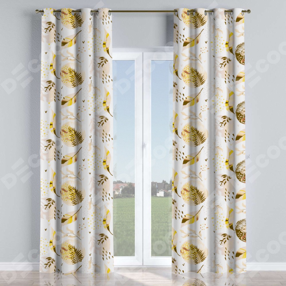 Комплект прямых штор, от производителя «Cortin», пошиты из ткани блэкаут с нанесением сублимационной печати «Золотые листья». Данная модель пошита на люверсах, комплектуется на выбор круглым карнизом и подходит для монтажа на стену или потолок. Прямые шторы на люверсах шьются по стандарту с коэффициентом 1/2 (на 100 см. ширины проёма 200 см. ширины ткани), отличительным преимуществом данной модели является простой способ монтажа. Достаточно повесить ее на трубу и штора готова!