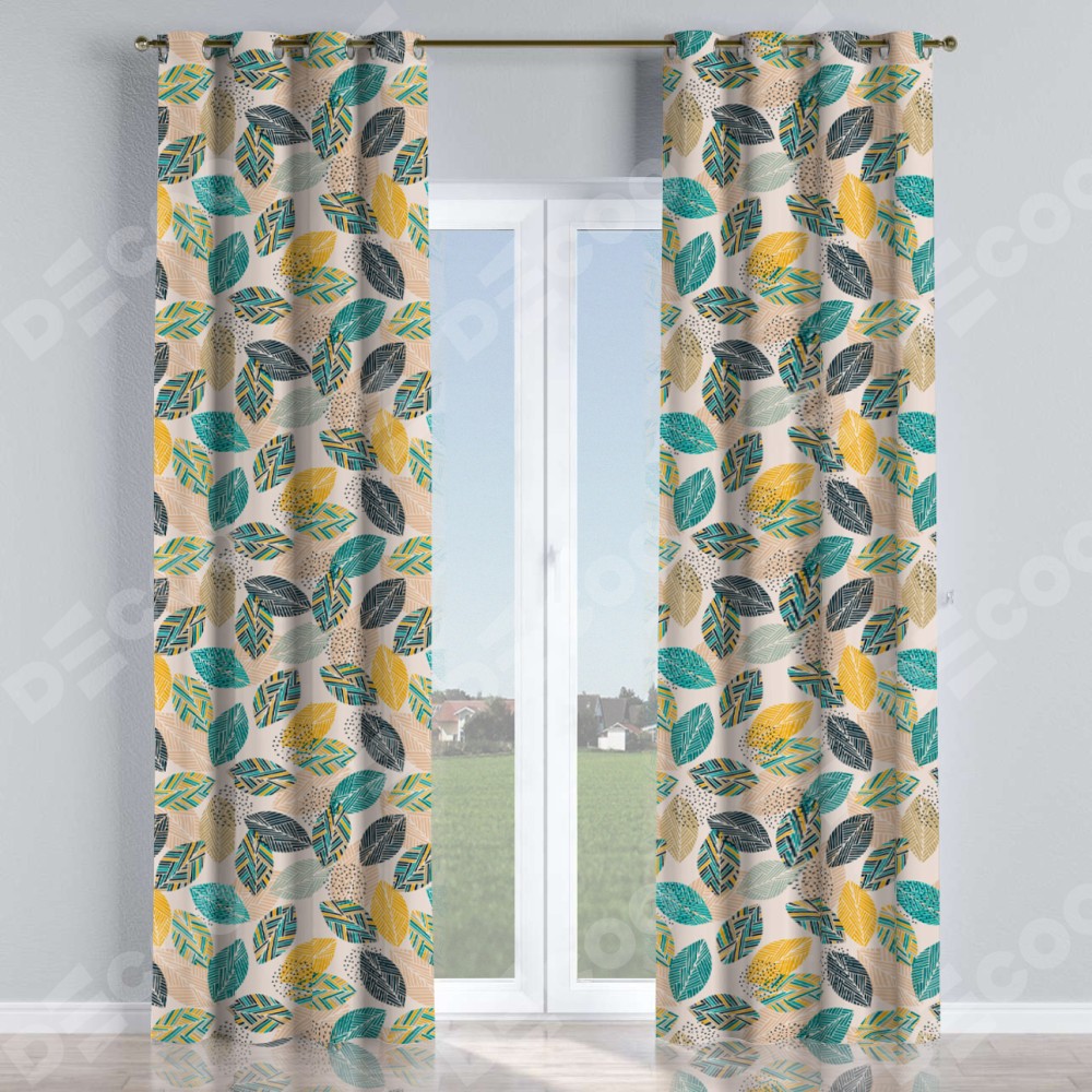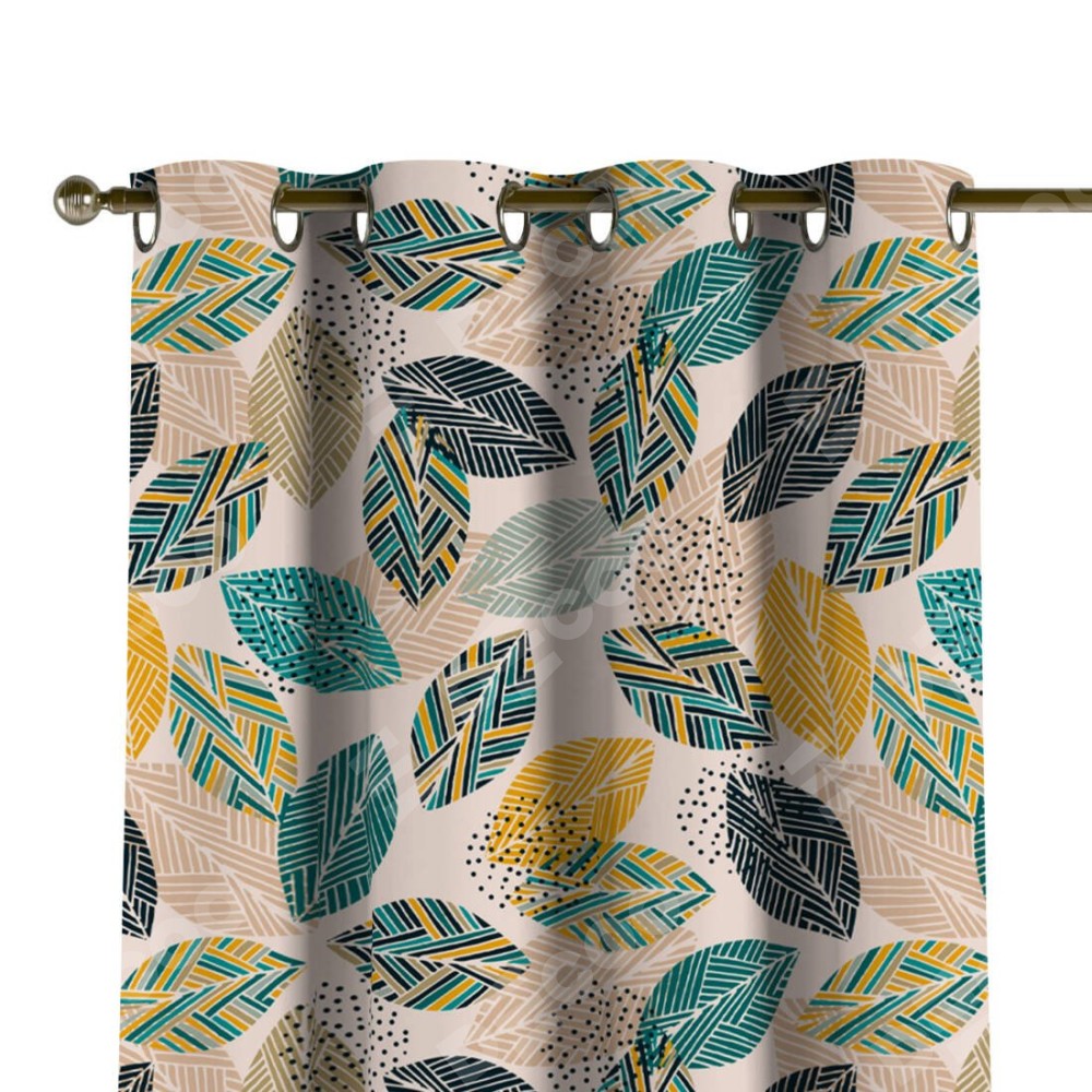 Комплект штор на люверсах «Листья с орнаментом» отлично подойдёт для интерьера комнату, холл и столовая.