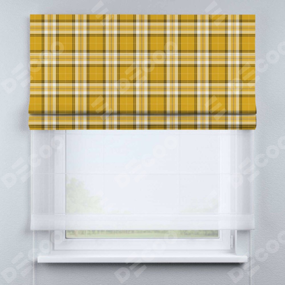 Римская штора «Кортин» день-ночь «Желто-горчичная клетка»