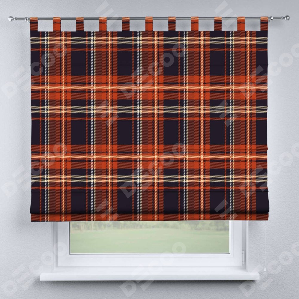 Римская штора производителя «Cortin», используется для проёма, пошита из ткани блэкаут с нанесением сублимационной печати «Сине-оранжевая клетка». Данная модель пошита на петлях, комплектуется на выбор круглым карнизом и подходит для монтажа на стену. Римская штора на петлях имеет простую систему регулировки высоты, отличительным преимуществом данной модели является простой способ монтажа. Достаточно повесить ее на трубу и штора готова!