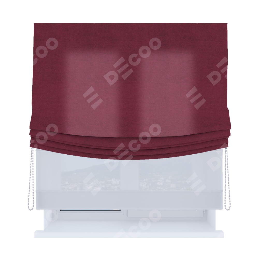 Римская штора день-ночь производителя «Cortin», используется для проёма, пошита из двух полотен, с лицевой стороны вельвет бордовый артикул 85553, вторая ткань тюль (по стандарту комплектуется тюль белого цвета артикул V-01). Имеет универсальный механизм и подходит для монтажа: на потолок, на стену и в нишу. Удобное управление каждой шторой отдельно.