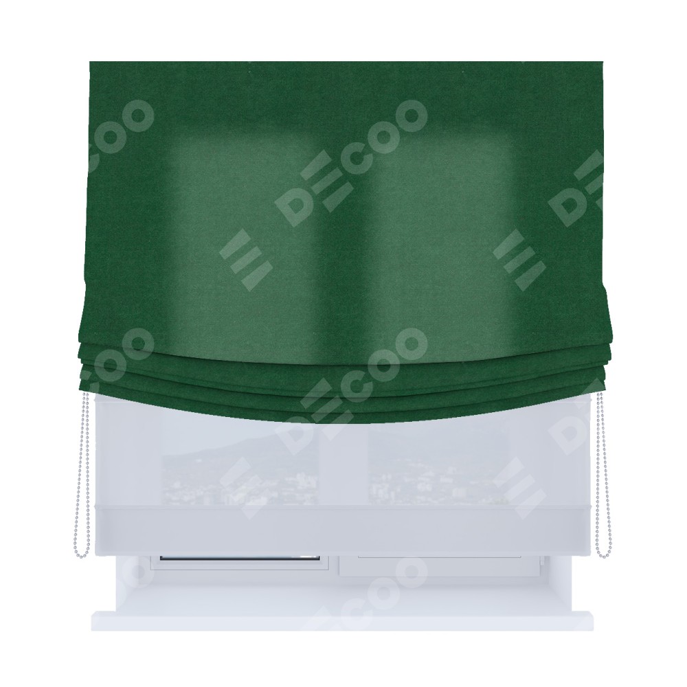 Римская штора «Кортин», день-ночь с мягкими складками, вельвет зелёный