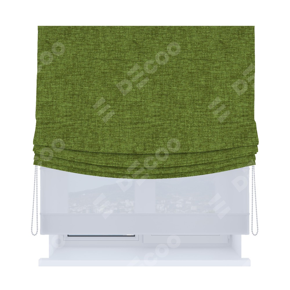 Римская штора «Кортин», день-ночь с мягкими складками, рогожка димаут салатовый