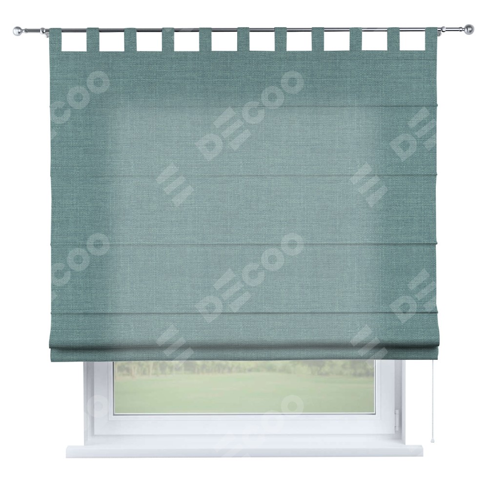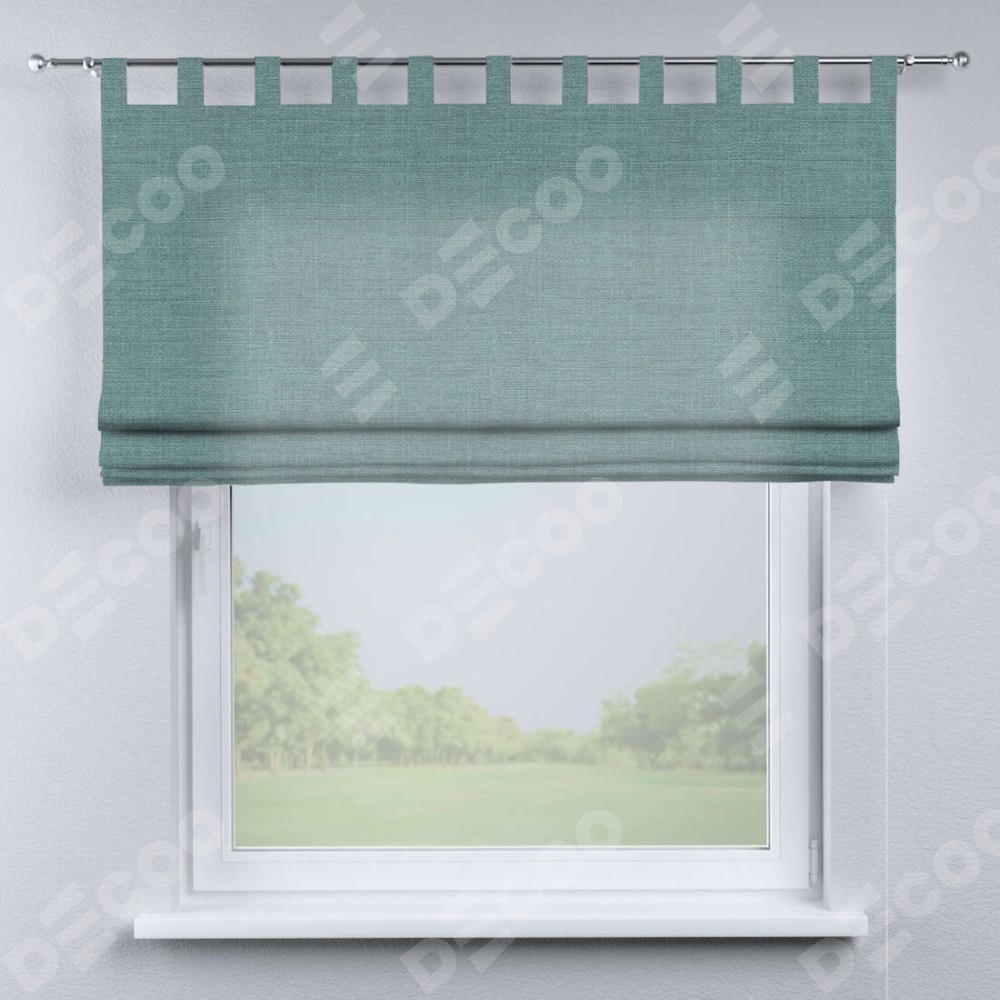 Римская штора производителя «Cortin», используется для проёма, пошита из ткани лён голубой, артикул ткани 74736. Данная модель пошита на петлях, комплектуется на выбор круглым карнизом и подходит для монтажа на стену. Римская штора на петлях имеет простую систему регулировки высоты, отличительным преимуществом данной модели является простой способ монтажа. Достаточно повесить ее на трубу и штора готова!
