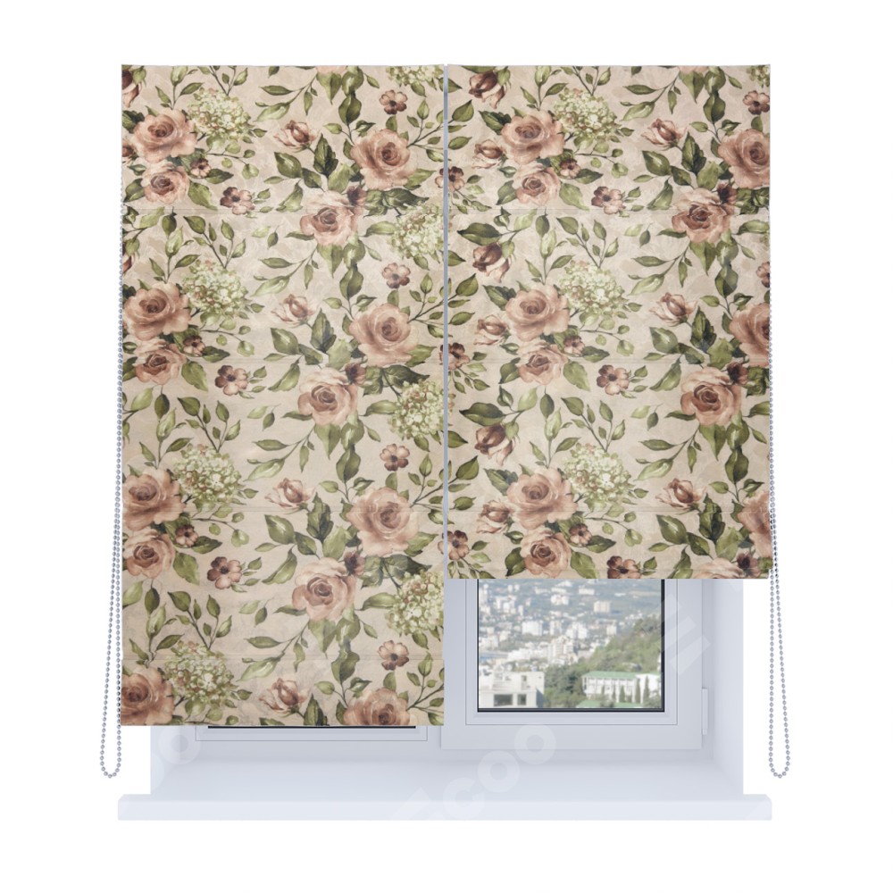 Римская штора «Кортин», система «Комфорт», ткань «Розы бежевые»