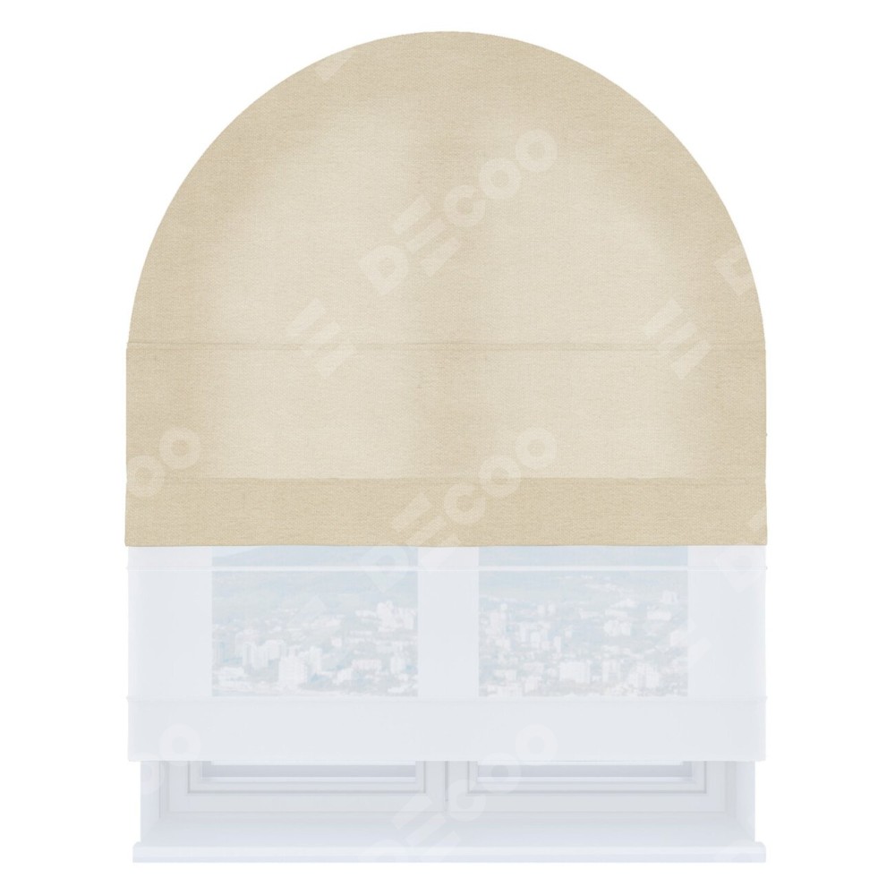 Римская штора день-ночь производителя «Cortin», используется для арочного проёма, пошита из двух полотен, с лицевой стороны лён кашемир шампань артикул 17205, вторая ткань тюль (по стандарту комплектуется тюль белого цвета артикул V-01). Штора шьётся по индивидуальным размерам, для данного типа римской шторы возможная ширина от 60 до 300 см. Удобное управление каждой шторой отдельно.