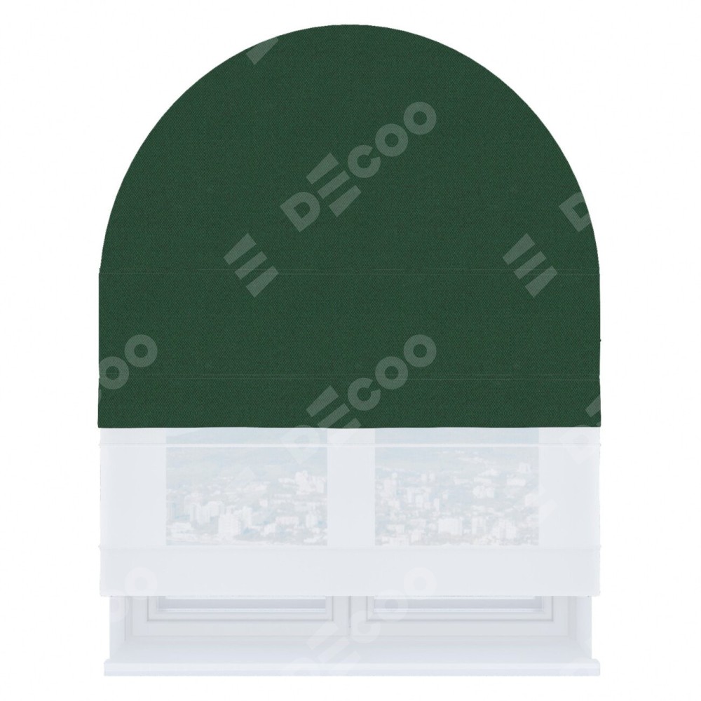 Римская штора «Кортин» день-ночь для арочного проёма, ткань лён димаут тёмно-зелёный