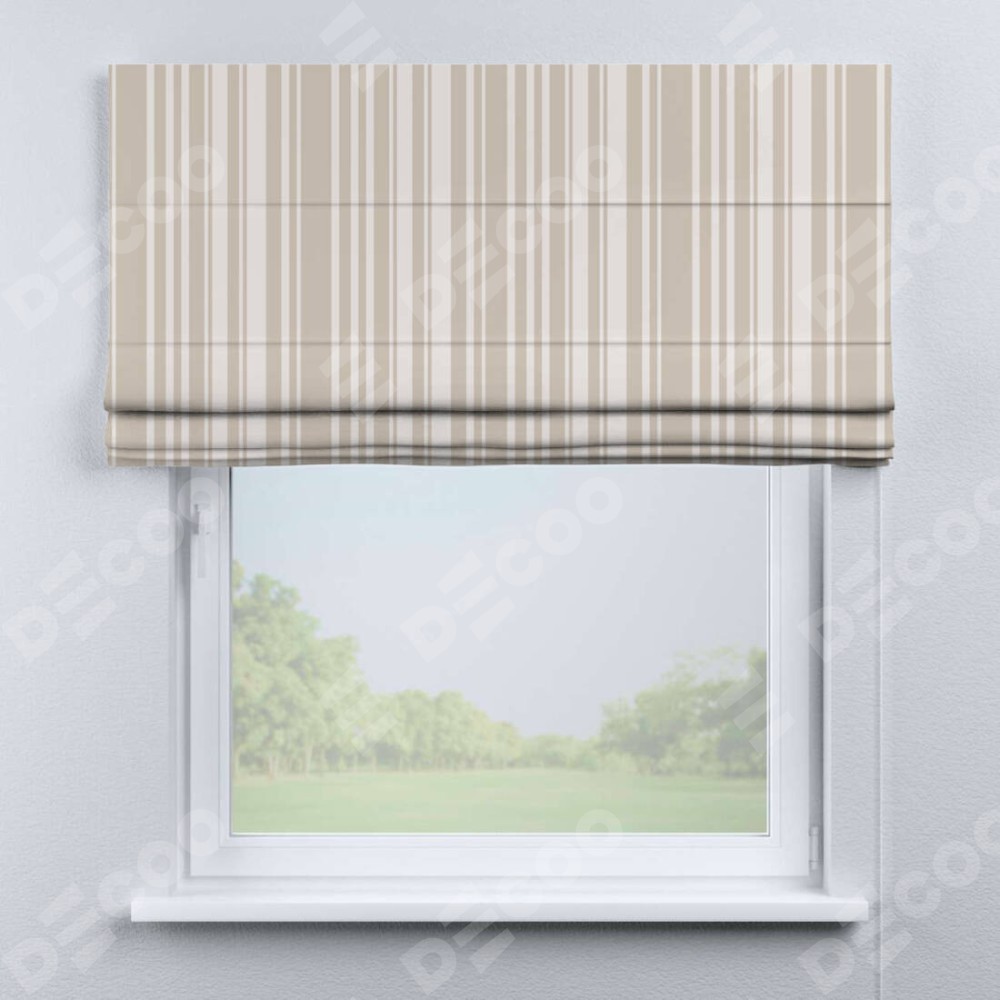 Римская штора «Кортин» для проема «Бежевые вертикальные полоски» отлично подойдёт для интерьера: в офис, в спальню и на балкон.
