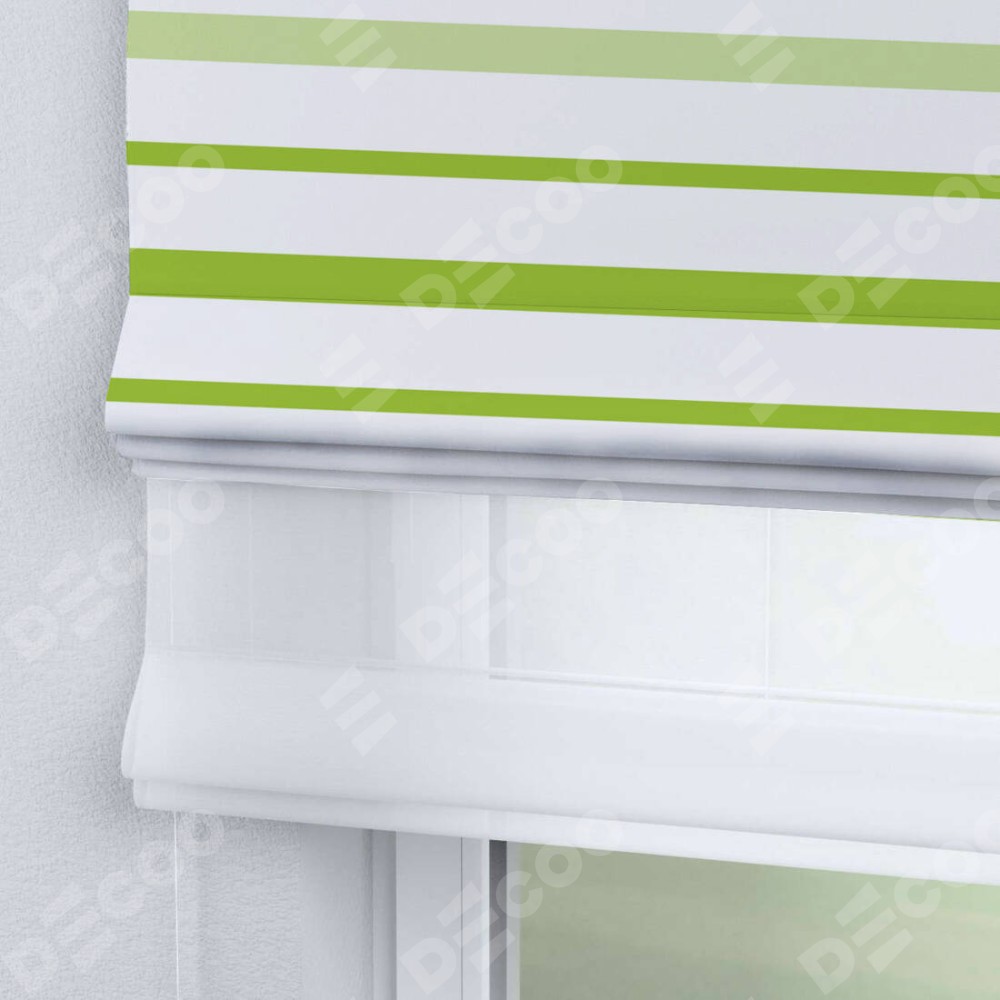Римская штора «Кортин» день-ночь «Зелёные горизонтальные полоски» доступна к заказу по по вашим размерам. Заводской артикул: 23509. будет зависеть от размерных характеристик и начинается от 5 300 руб. В интернет-магазине Decoo вы сможете заказать товар в любых вариациях.