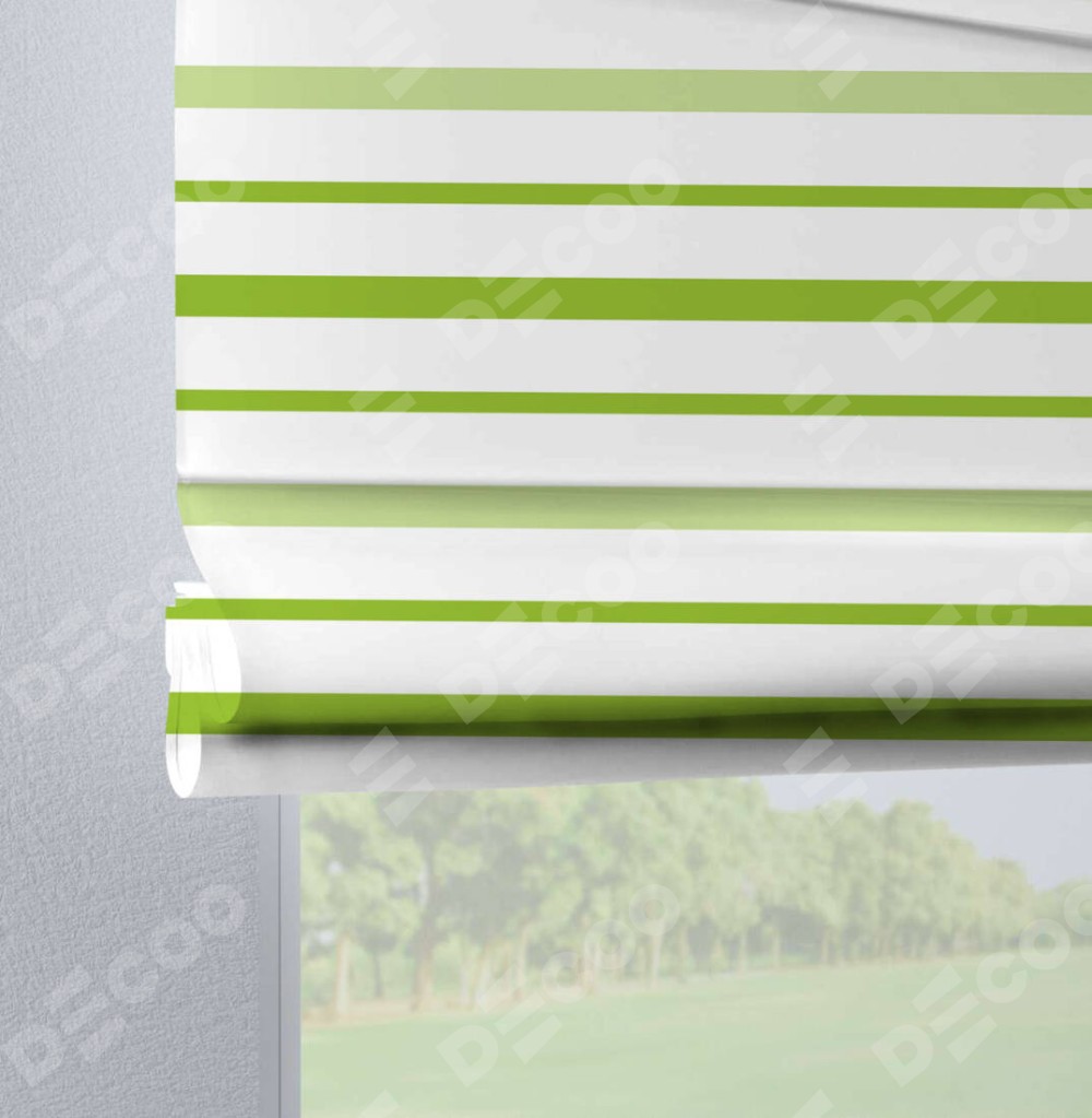Римская штора «Кортин» на петлях «Зелёные горизонтальные полоски» предоставлена в следующих характеристиках: