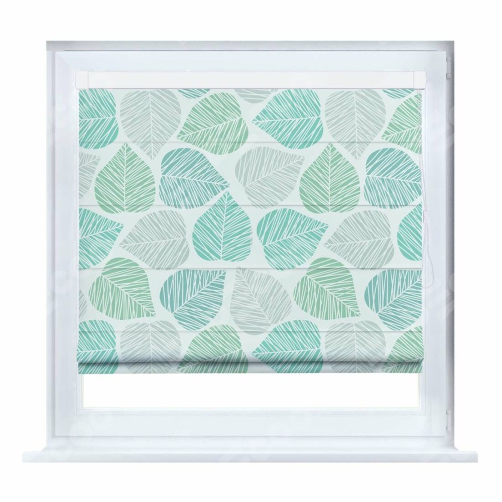 Римская штора «Кортин» на створку «Весенняя листва» отлично подойдёт для интерьера: в кухню, в спальню и на балкон.