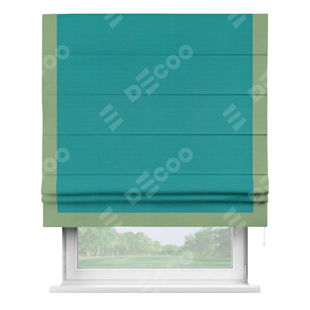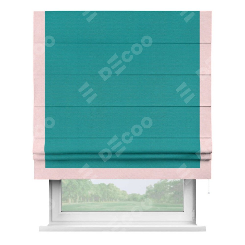 Римская штора «Кортин» с кантом Виктория, для проема, ткань блэкаут однотонный бирюзовый