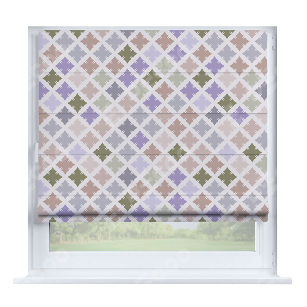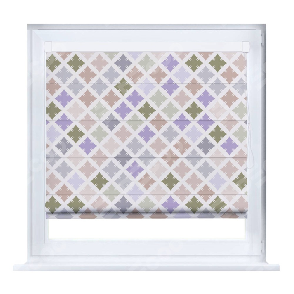 Римская штора производителя «Cortin», устанавливается на створку окна, пошита из ткани блэкаут с нанесением сублимационной печати «Фигурные плитки». Штора шьётся по индивидуальным размерам, для данного типа римской шторы возможная ширина от 35 до 150 см., высота до 250 см.