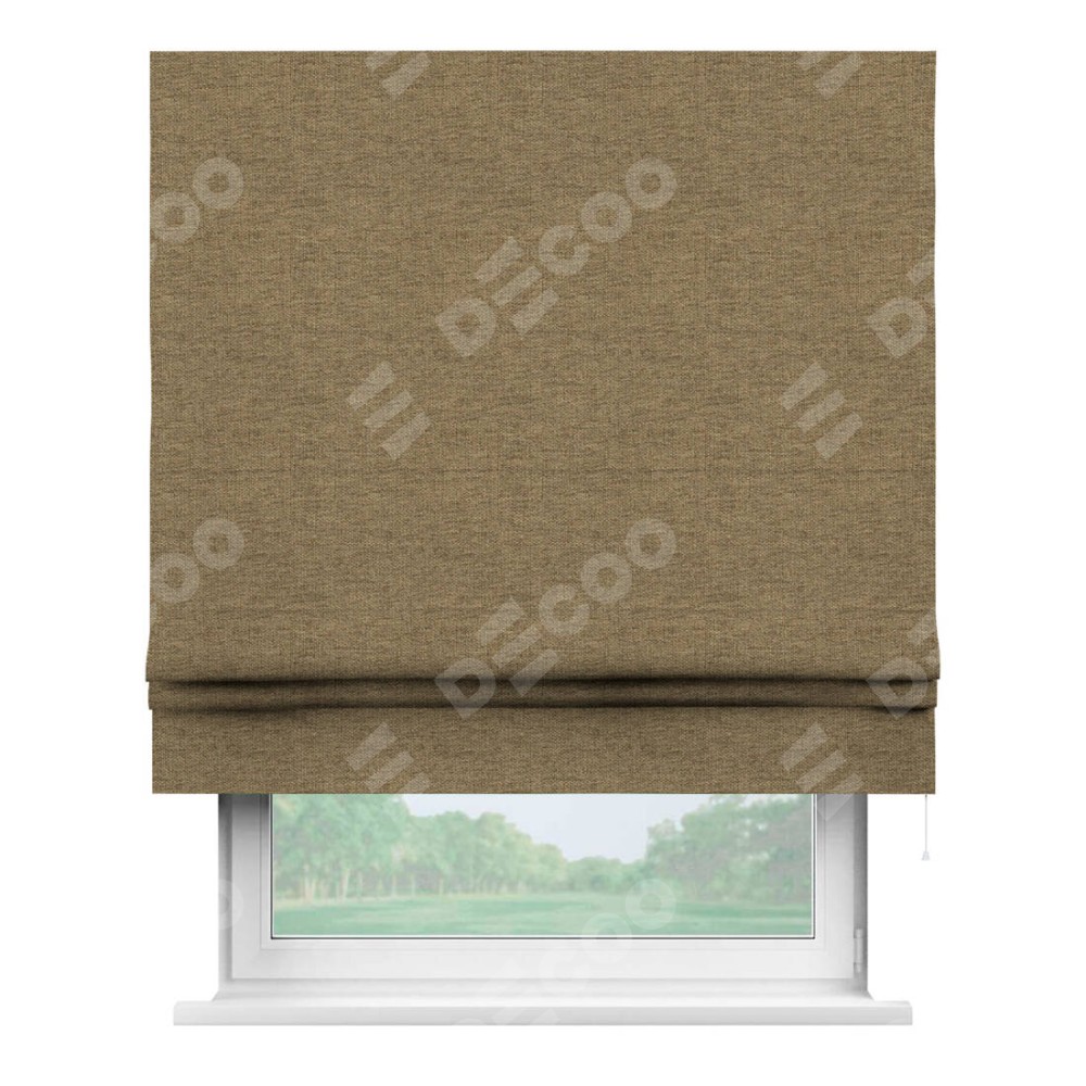 Римская штора производителя «Cortin», используется для проёма, пошита из ткани стиф димаут тёмно-бежевый, артикул ткани 18085. Имеет универсальный механизм и подходит для монтажа: на потолок, на стену и в нишу.