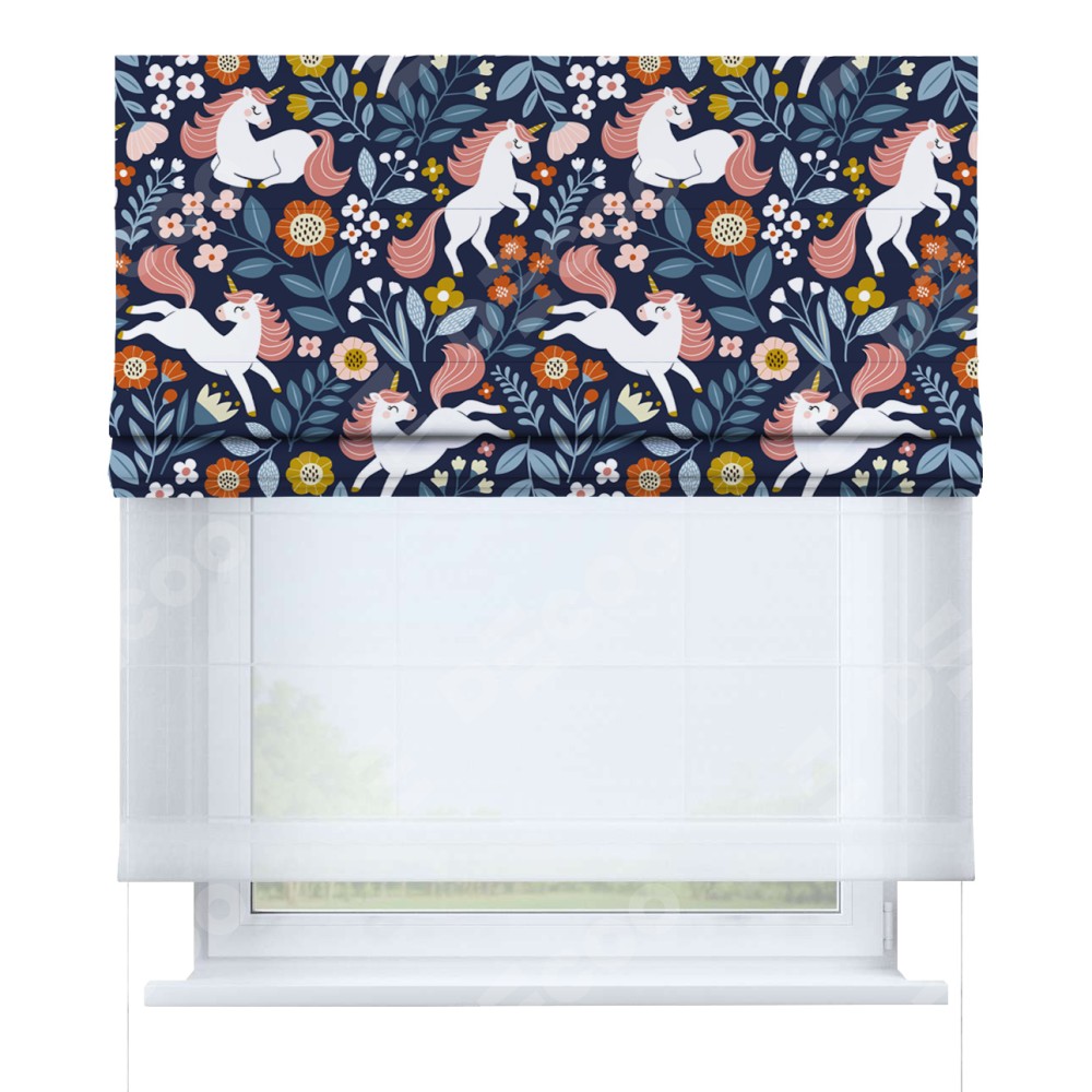 Римская штора «Кортин» день-ночь «Цветы и единороги»