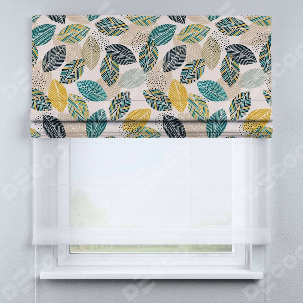 Римская штора «Кортин» день-ночь «Листья с орнаментом»