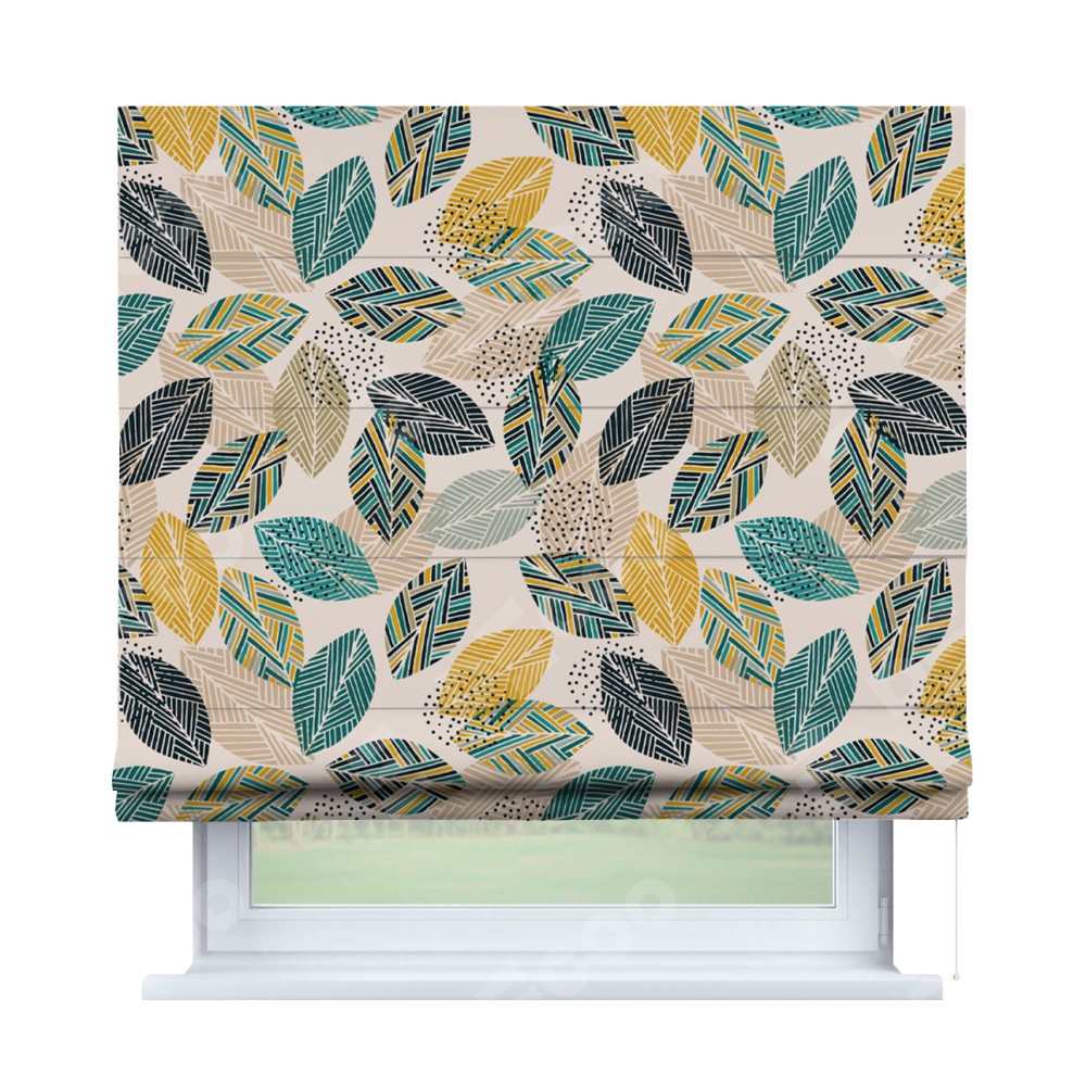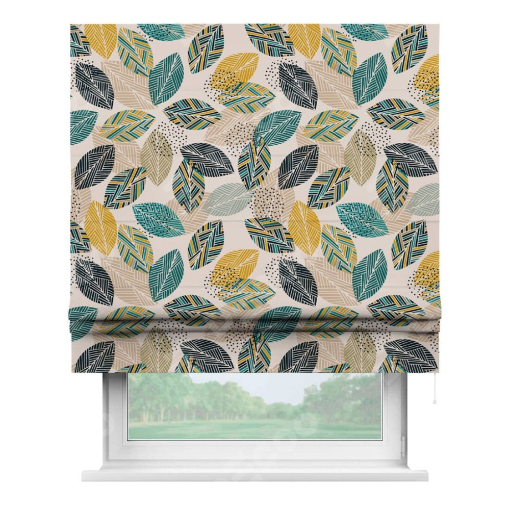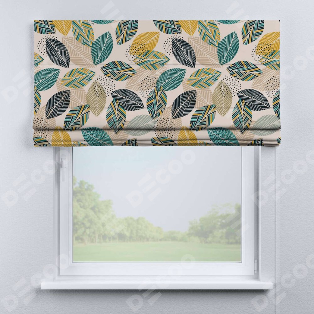 Римская штора «Кортин» для проема «Листья с орнаментом» отлично подойдёт для интерьера: на балкон, в кухню и в спальню.