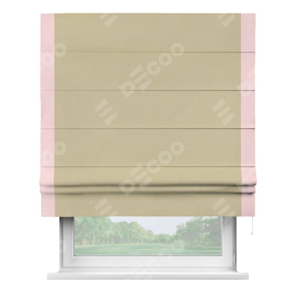 Римская штора производителя «Cortin», используется для проёма, пошита из ткани блэкаут однотонный кофейный, артикул ткани 13130. Отделка шторы кантом «Стрим Дуо», ткань для канта используется из блэкаута однотонного разной расцветки на выбор. Имеет универсальный механизм и подходит для монтажа: на потолок, на стену и в нишу.