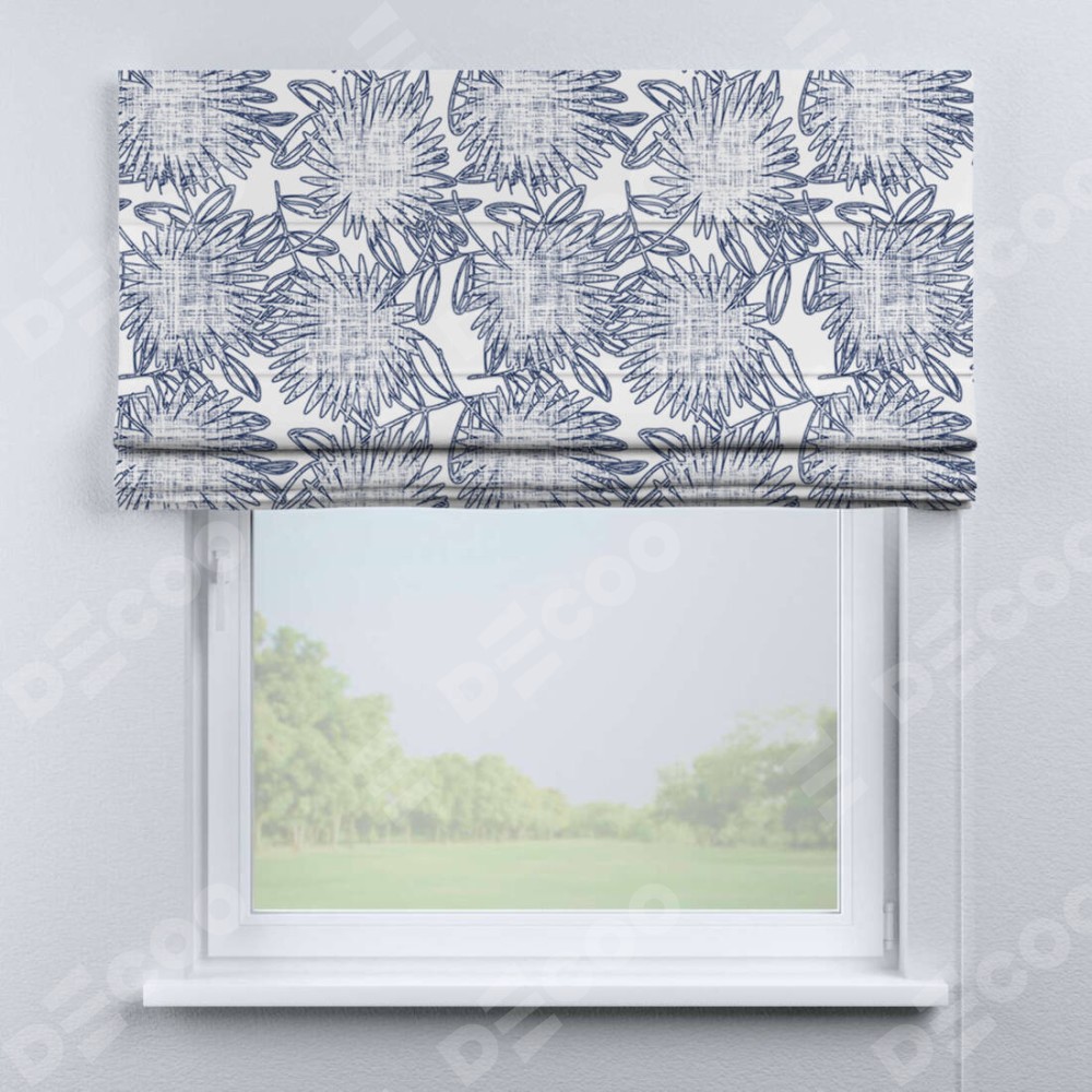 Римская штора «Кортин» для проема «Синий букет» отлично подойдёт для интерьера: в кухню, в спальню и на балкон.