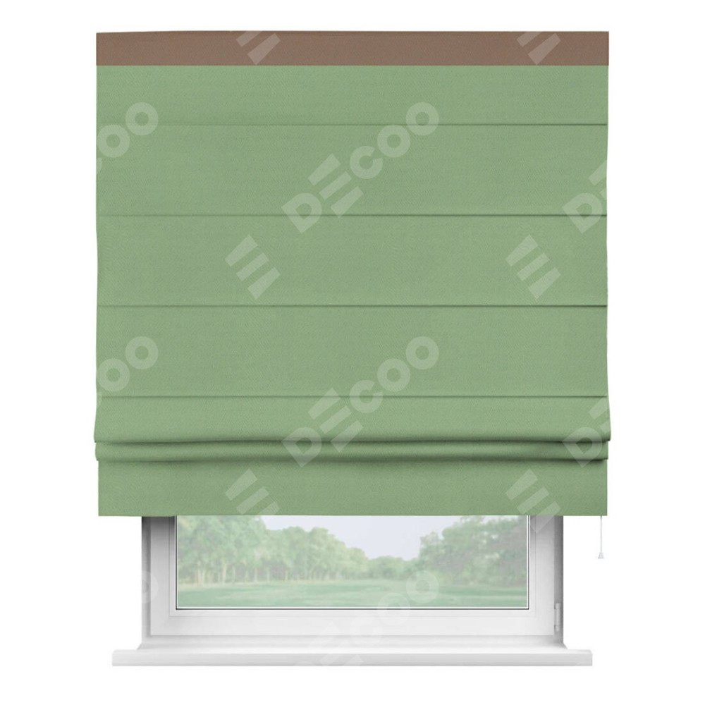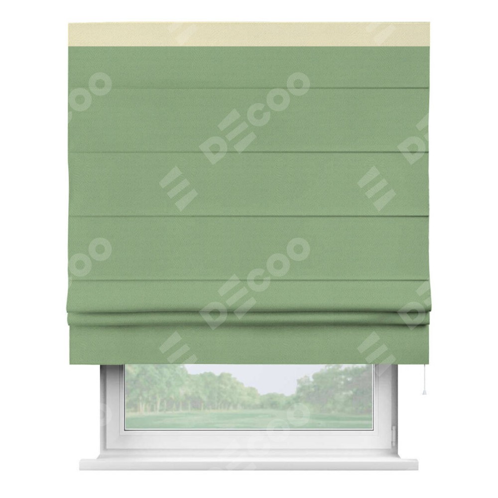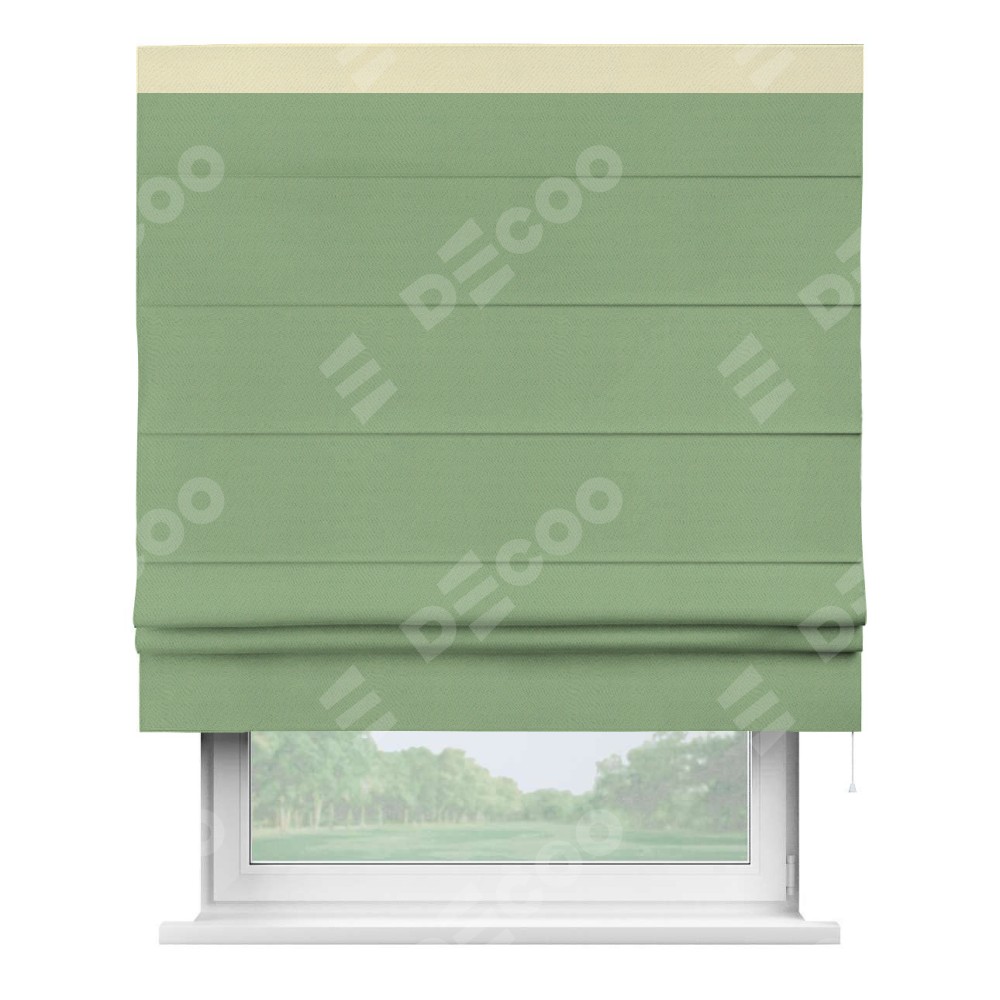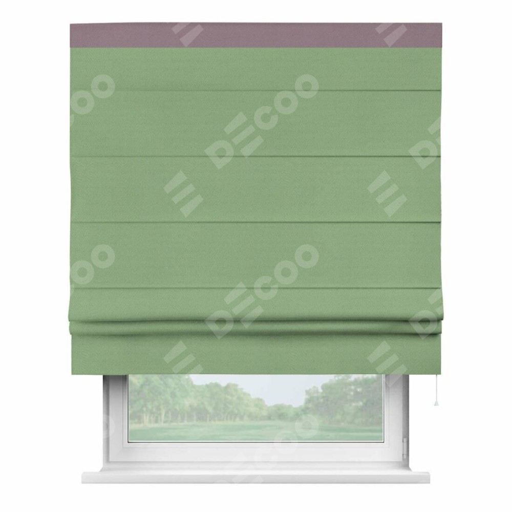 Римская штора производителя «Cortin», используется для проёма, пошита из ткани блэкаут однотонный оливковый, артикул ткани 88300. Отделка шторы кантом «Кинг», ткань для канта используется из блэкаута однотонного разной расцветки на выбор. Имеет универсальный механизм и подходит для монтажа: на потолок, на стену и в нишу.