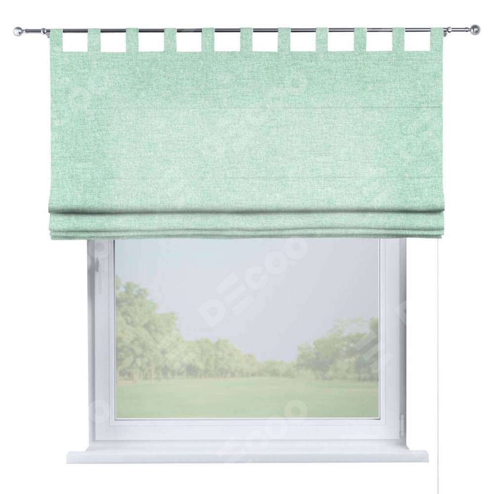 Римская штора производителя «Cortin», используется для проёма, пошита из ткани лён кашемир мятный, артикул ткани 21617. Данная модель пошита на петлях, комплектуется на выбор круглым карнизом и подходит для монтажа на стену. Римская штора на петлях имеет простую систему регулировки высоты, отличительным преимуществом данной модели является простой способ монтажа. Достаточно повесить ее на трубу и штора готова!