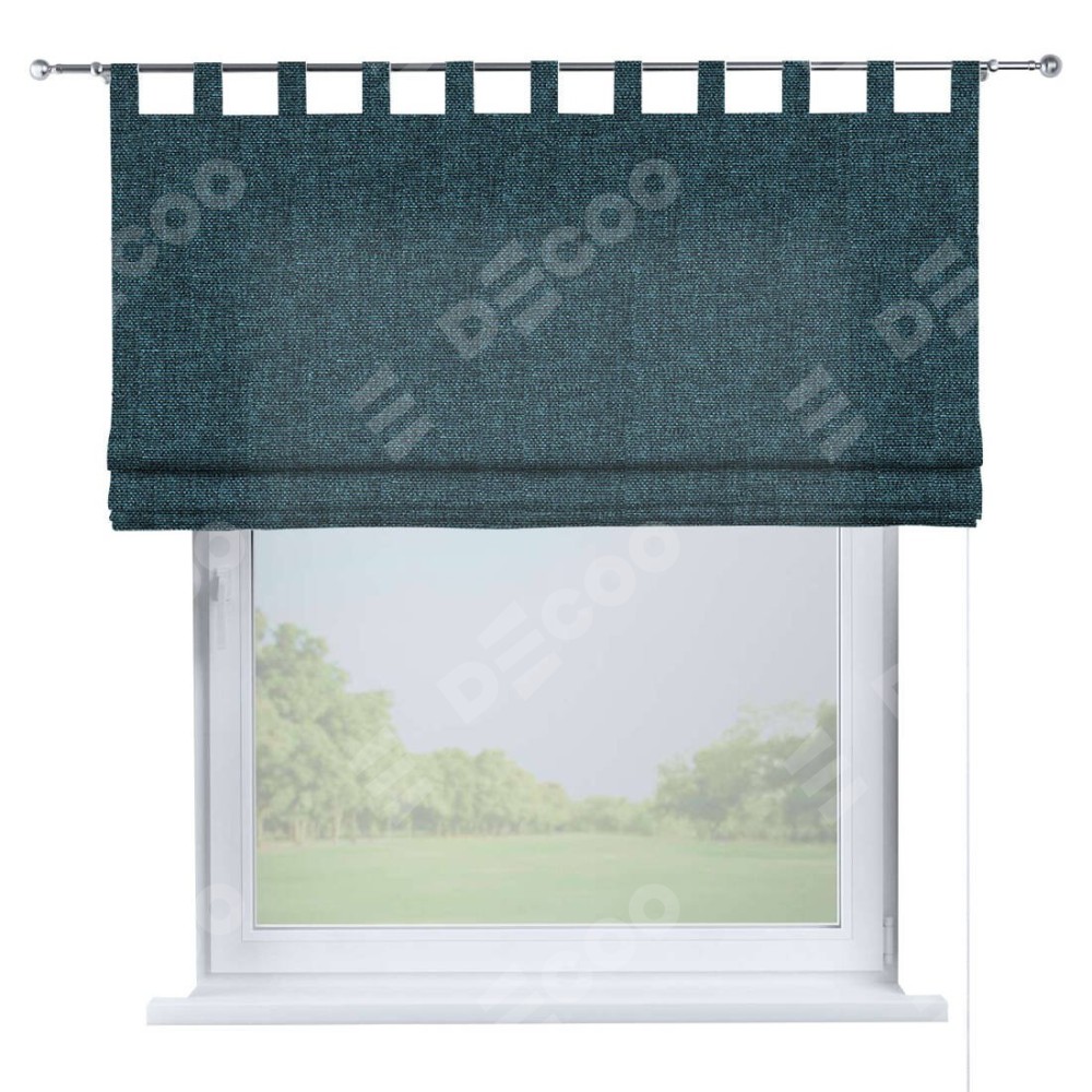 Римская штора производителя «Cortin», используется для проёма, пошита из ткани лён кашемир синий, артикул ткани 21623. Данная модель пошита на петлях, комплектуется на выбор круглым карнизом и подходит для монтажа на стену. Римская штора на петлях имеет простую систему регулировки высоты, отличительным преимуществом данной модели является простой способ монтажа. Достаточно повесить ее на трубу и штора готова!