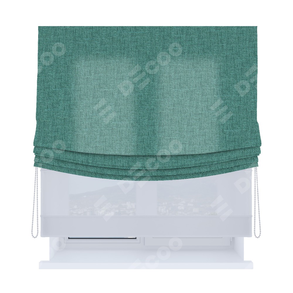 Римская штора «Кортин», день-ночь с мягкими складками, лён кашемир бирюзовый